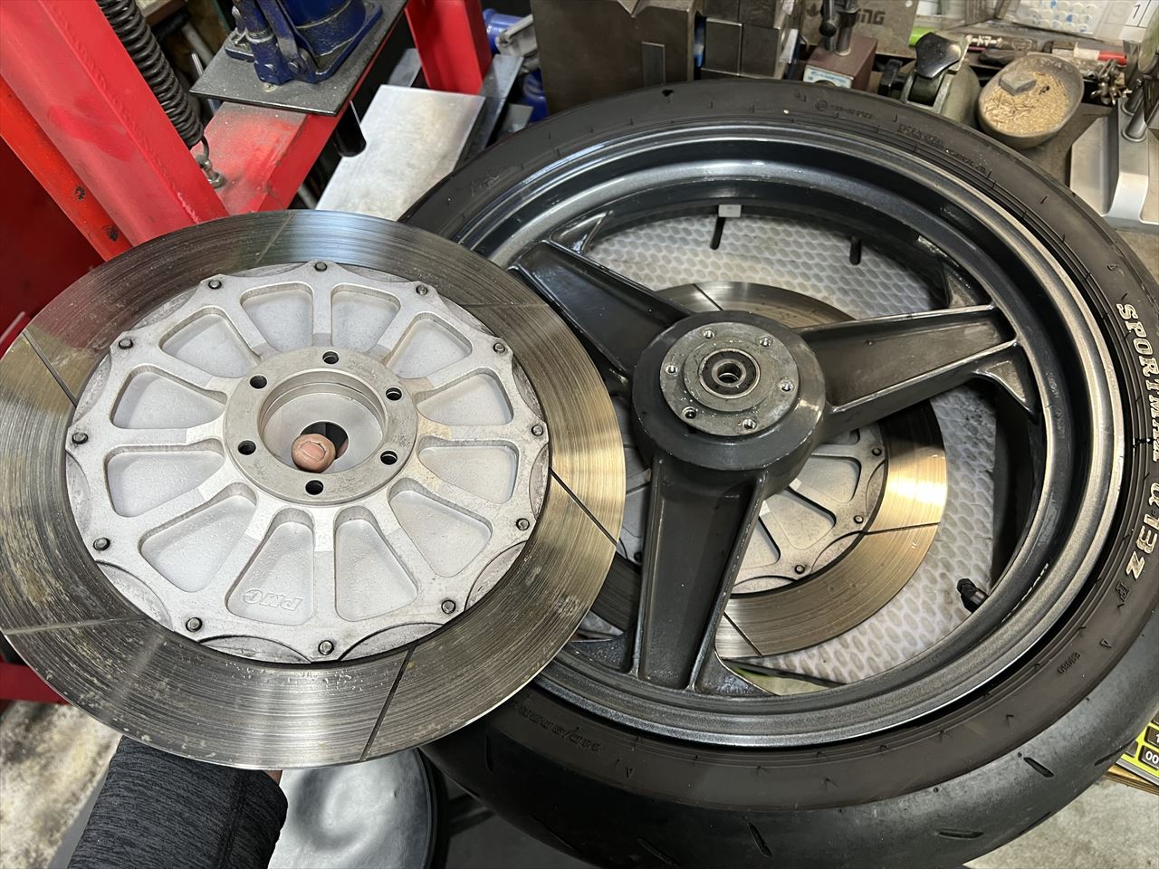 弊社のS1ローターに変更したいとのことで、ホイールを外して送っていただきました。採寸してこのホイール専用に設計します。
