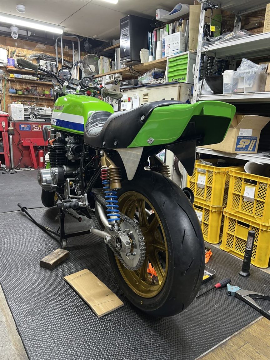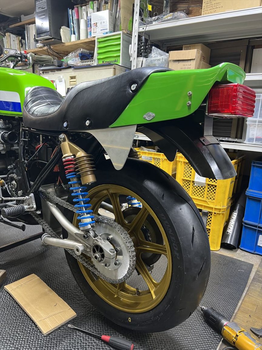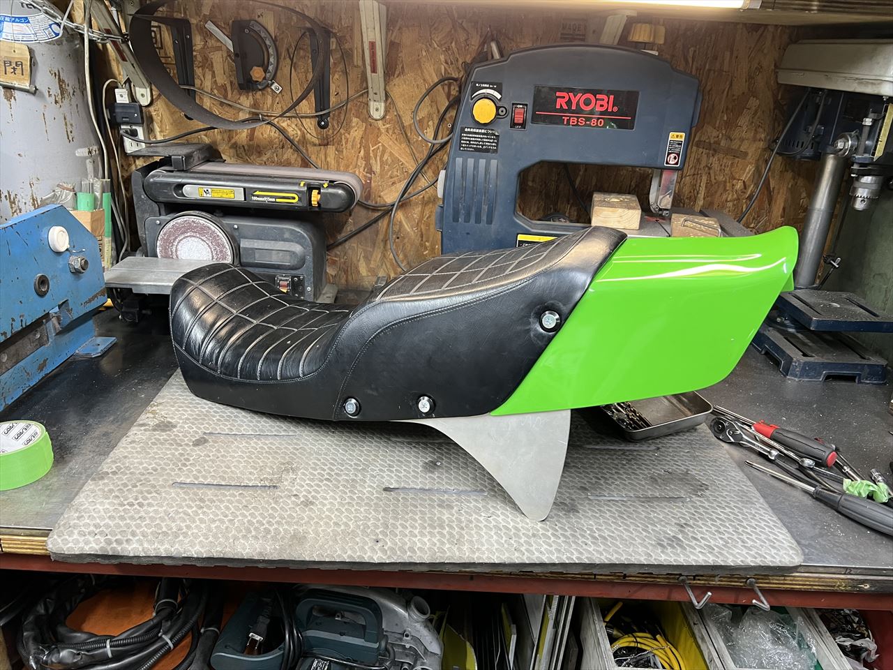 リベット止めし、テールカウルの交換ができました。このテールカウルもあくまで暫定です。本命の外装一式は現在塗装中なので、塗装が完成したら再度交換する予定です。