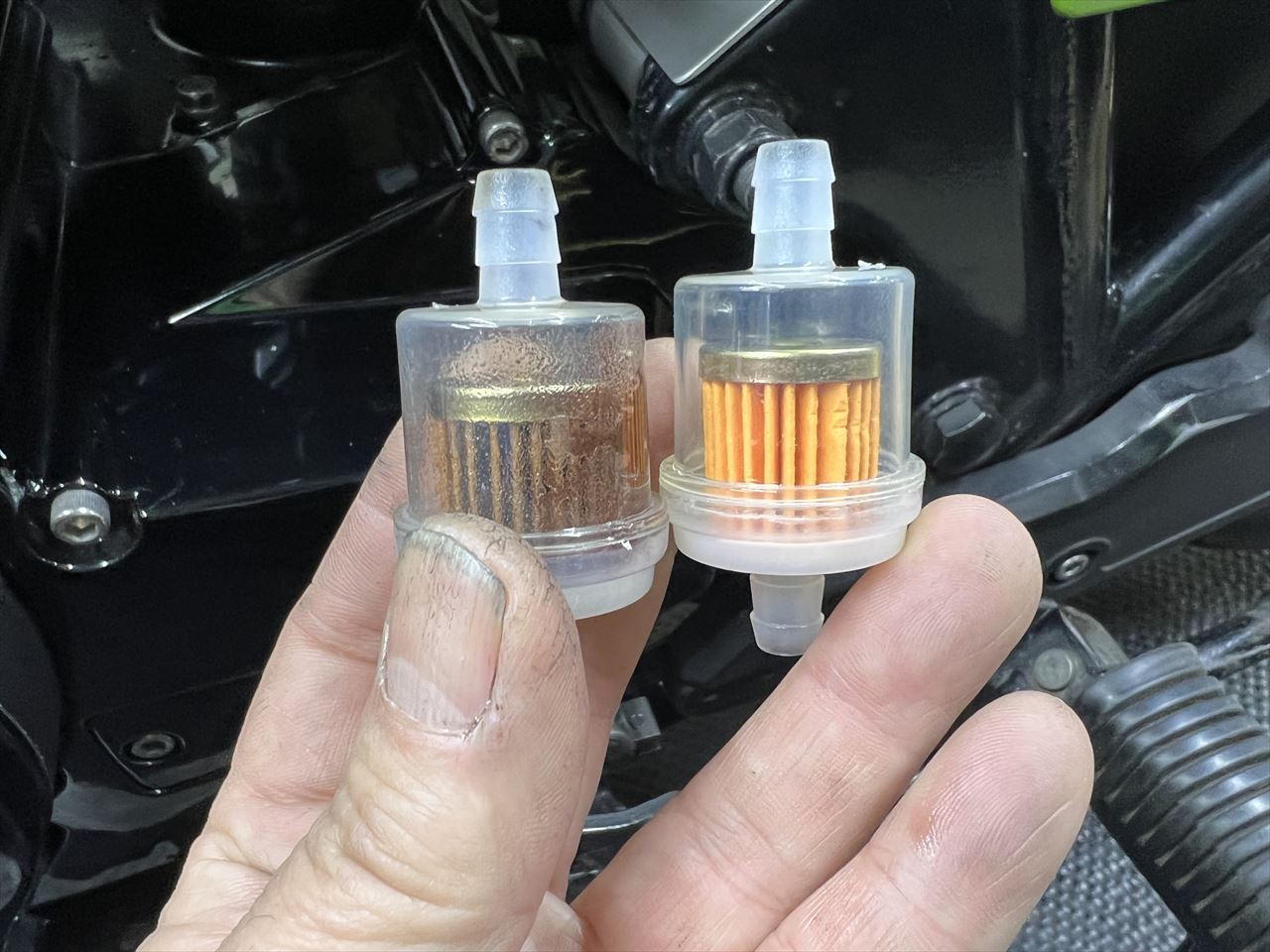 フューエルフィルターはサビが堆積していたので交換します。