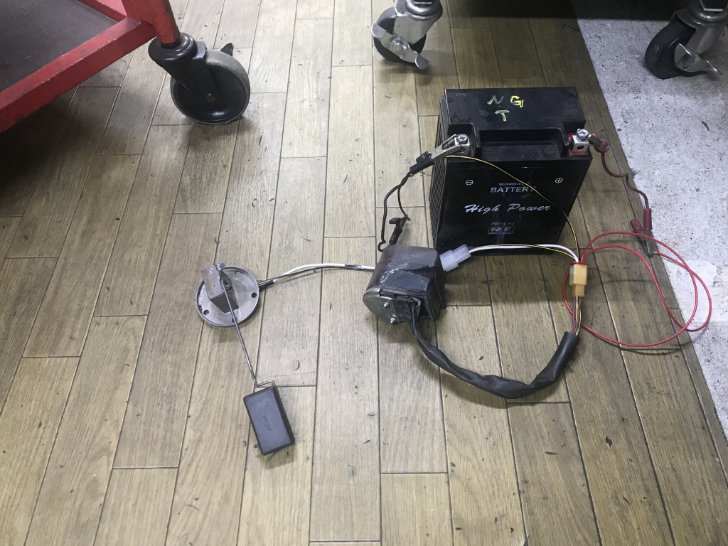 続いて、燃料計も再チェック。お持ち込みになられた新品デッドストックを取り付けましたが、走行中に針の振れが酷い状態。メーター屋さんでチェックもされたそうですが、異常無しとの回答とのこと。改めてチェックします。