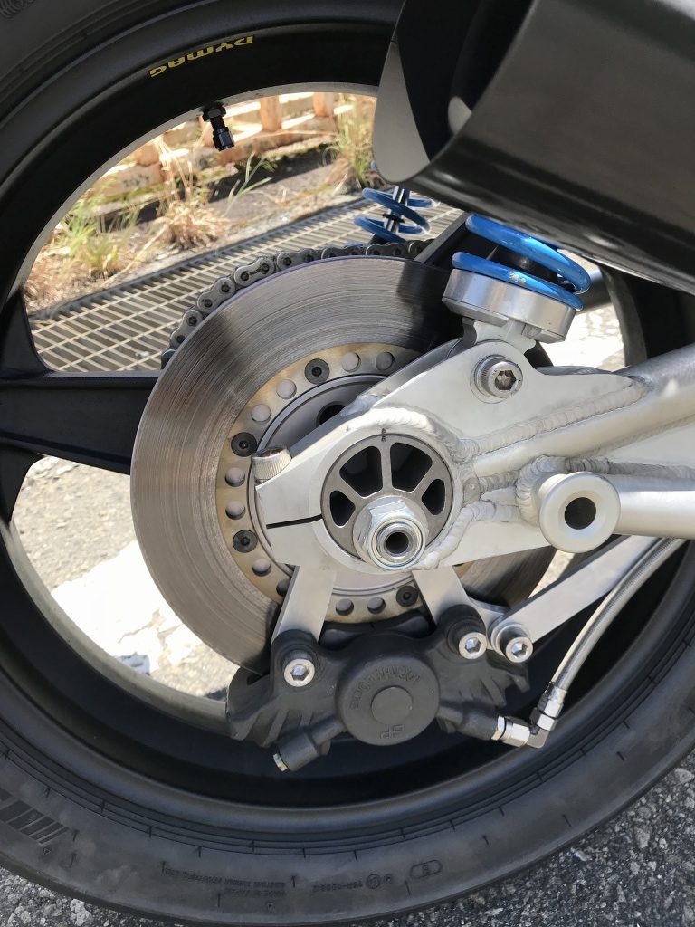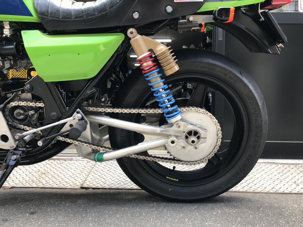レストアしたS1スイングアームもしっかり足回りを支えてくれています。