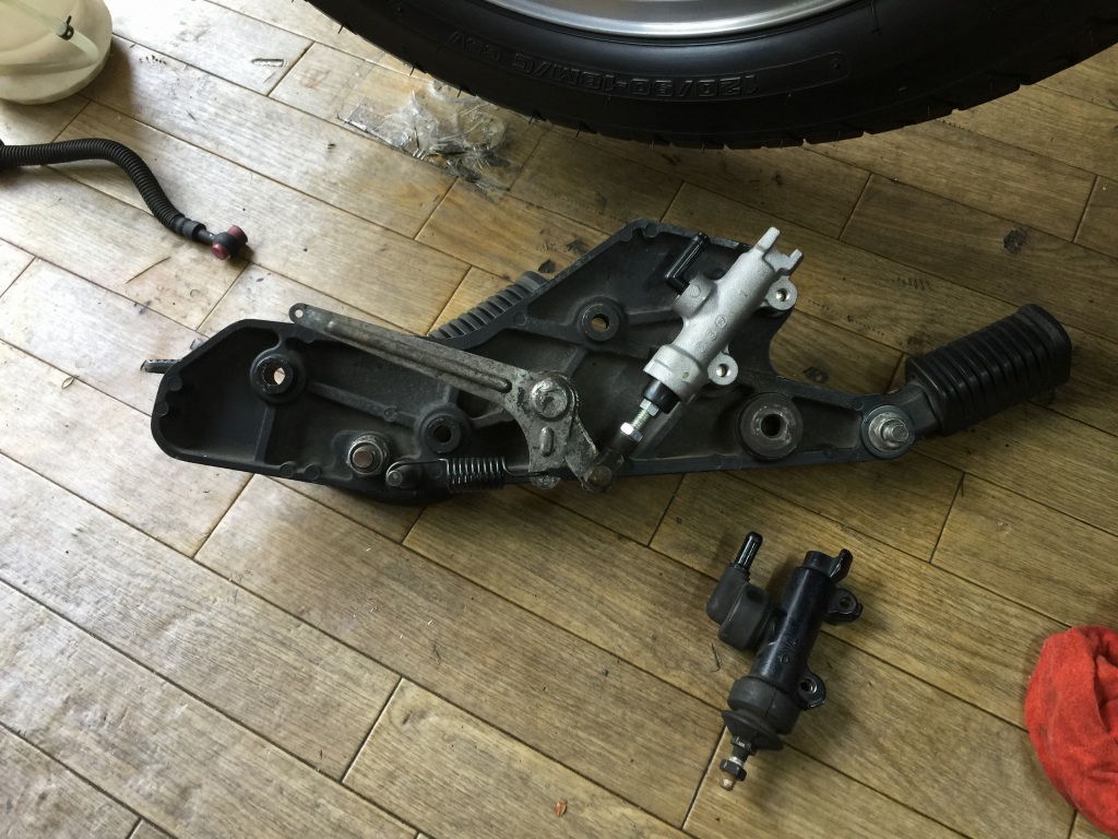 リヤブレーキの引きずりの原因が、リヤマスターの不具合と判明したため交換します。
