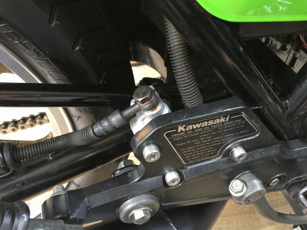 純正リヤマスターは生産終了のため、現行のニンジャ250のリヤマスターを流用します。