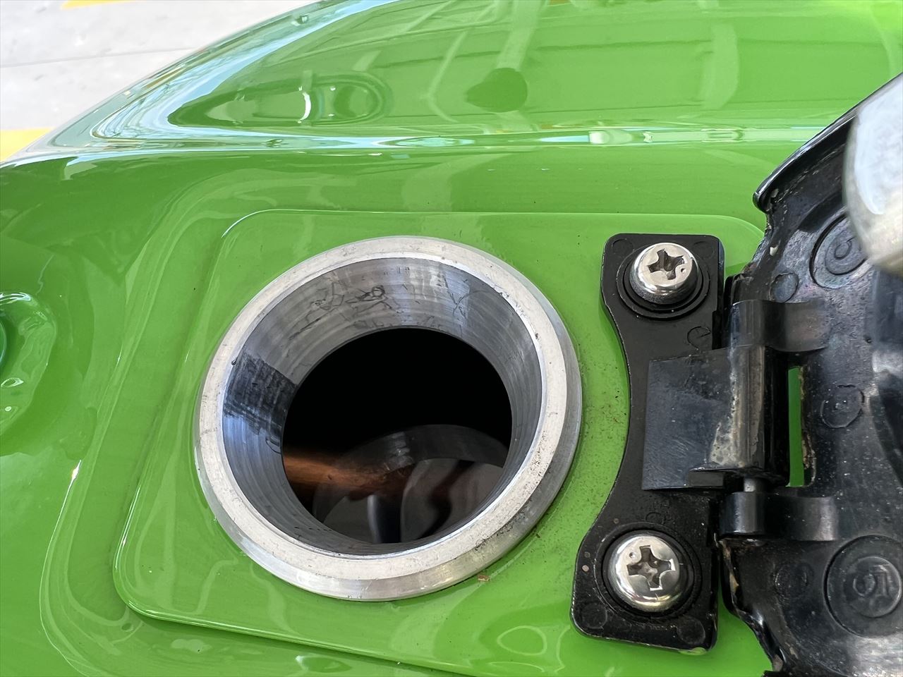 ガソリンを口元まで入れ、キャップからの漏れがないか、ブリーザーからの吹き出しが酷くないか確認します。