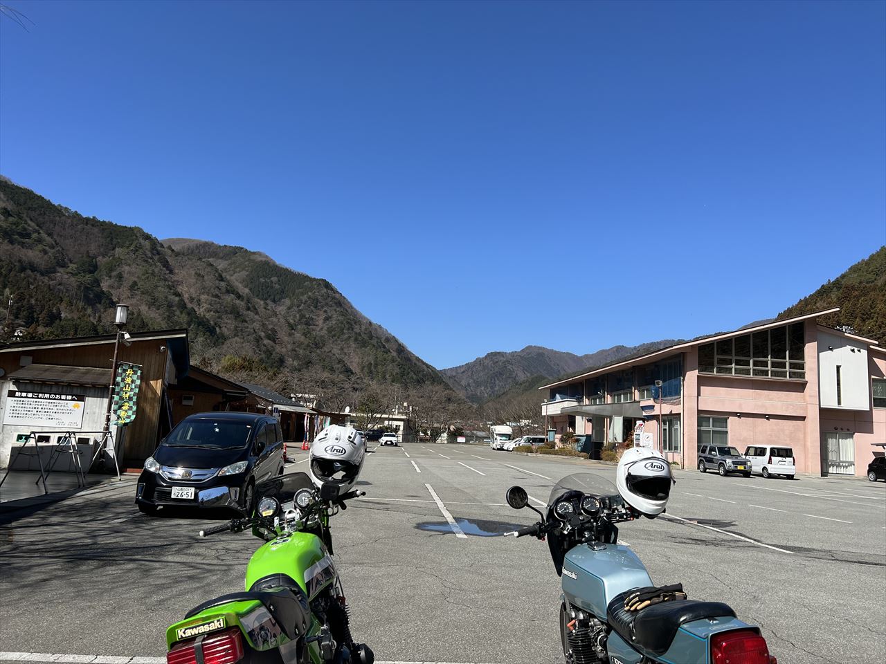 中央道上野原IC経由で奥多摩道の駅たばやまに到着。途中、ウエット路面もありましたが、凍結防止剤や残雪などの影響はなく快適に走れます。今日は朝から気温も上がり、本格的に春のツーリングシーズン到来といった感じです。