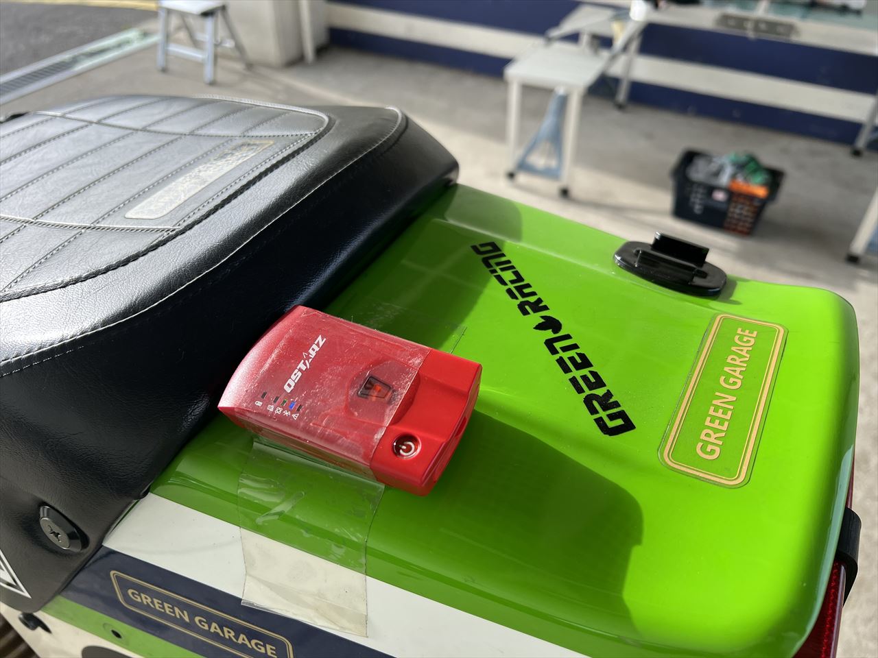 ラップタイマーの本体はこちら。GPSのみで計測するので、受信感度のいいテールカウルの上に設置します。