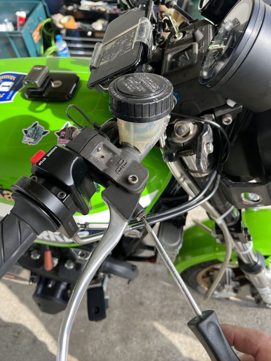 常温での握り代はこのくらいに調整します。走行中は握り代が減り、レーバー位置はもっと遠くなります。普通とは逆の特性をもっているキャリパーです。