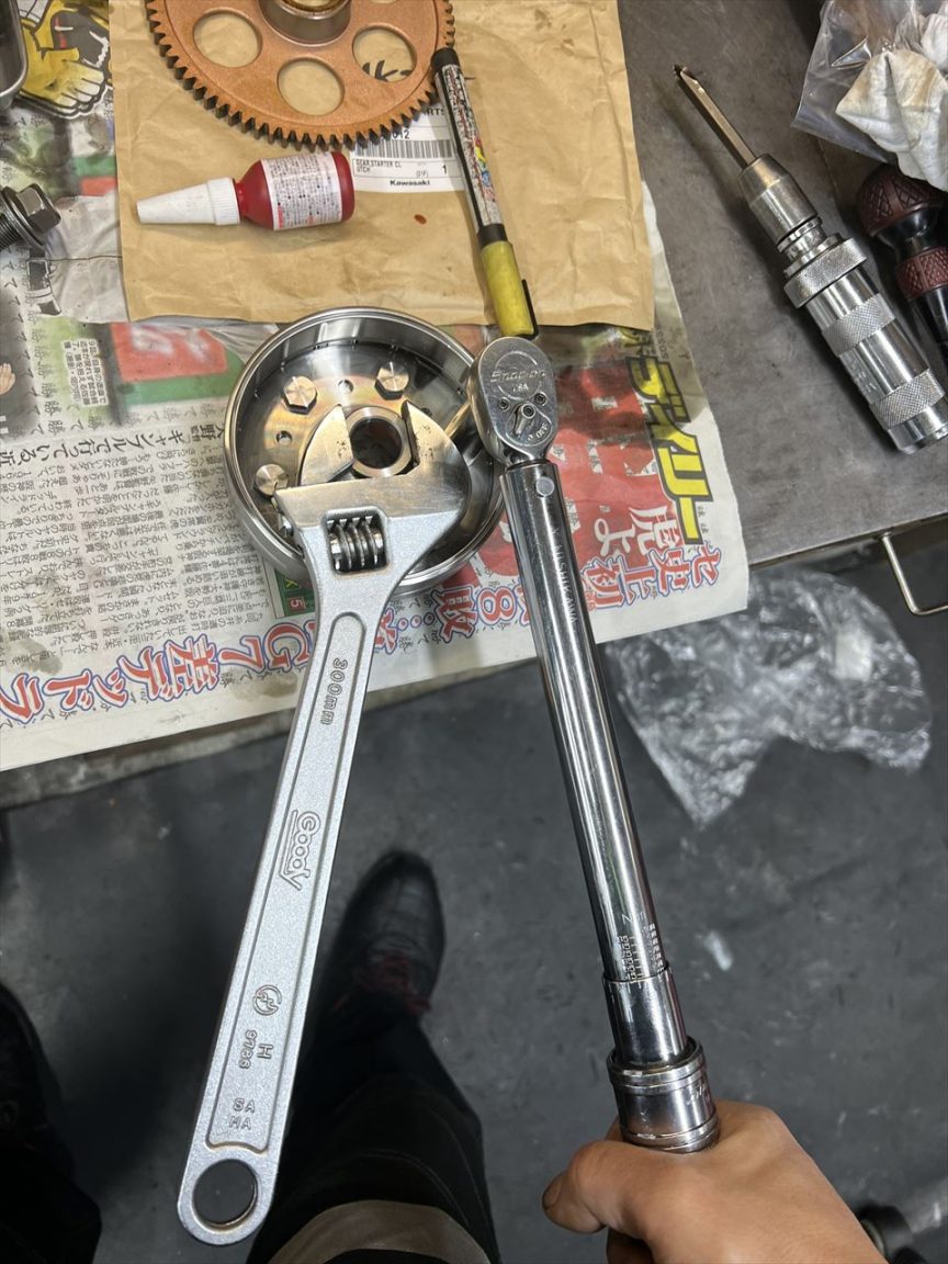 ジェネレーターローターASSYをクランクに組み付けます。