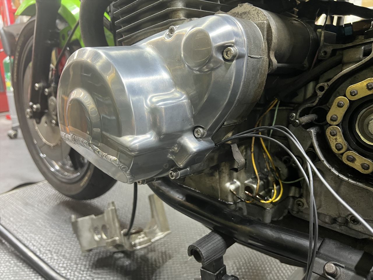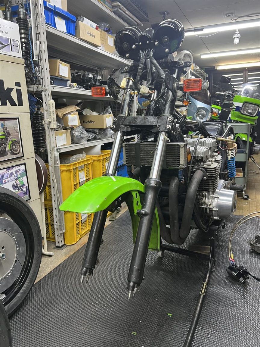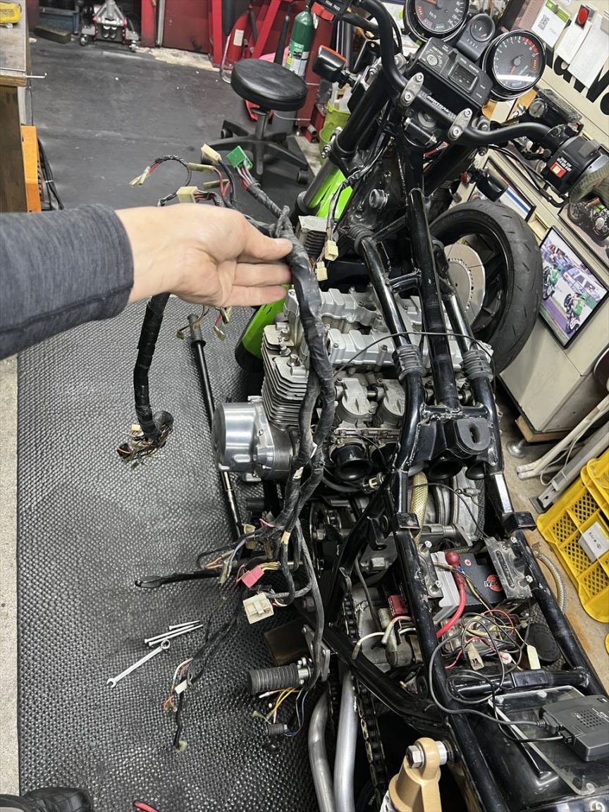 今回のカスタムは、弊社のフロントS1ローター、S1ステム取り付けと、メーンハーネス交換など電装系強化のご依頼です。