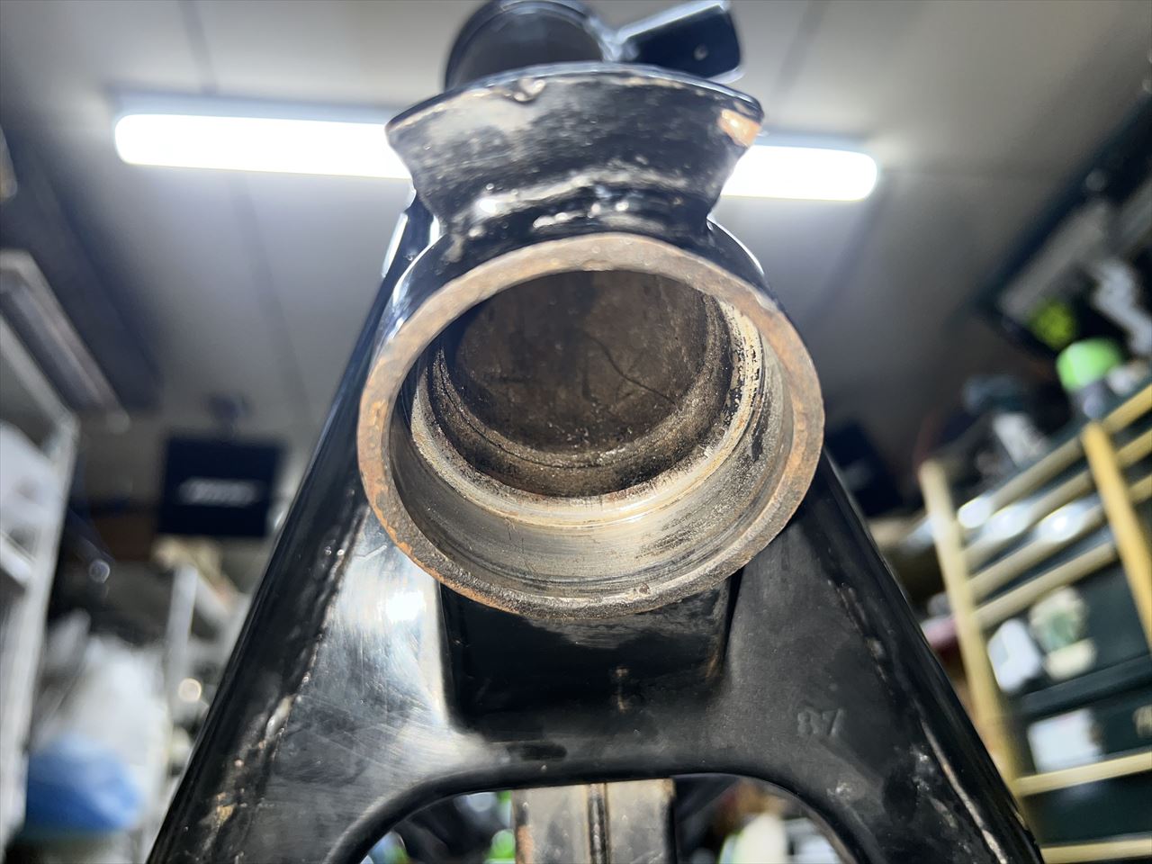 ヘッドパイプ内も清掃しておきます。