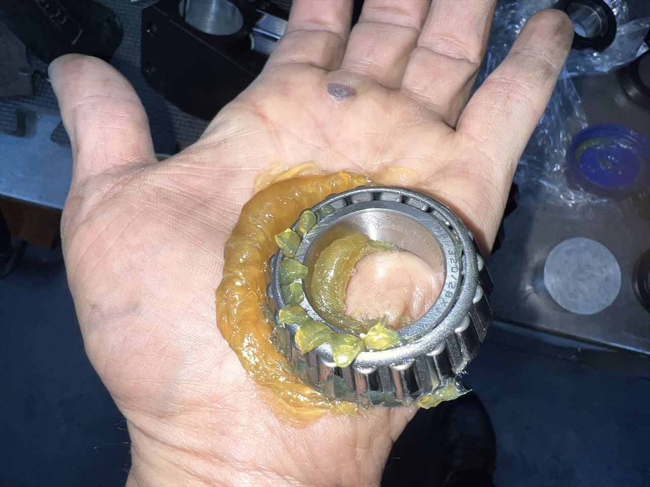 新品のベアリングには内部までグリスを充填します。
