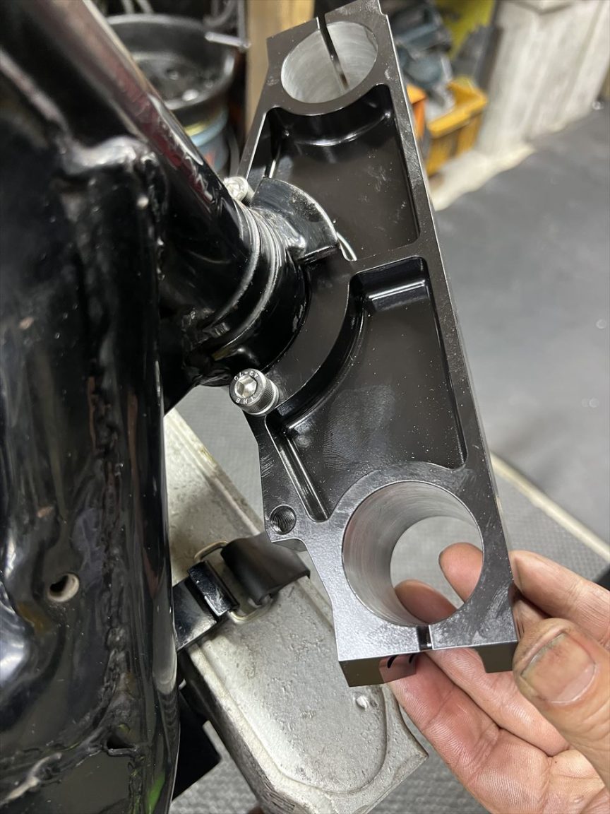 弊社のS1アンダーステムには、ストリート用にハンドルストッパー用の雌ネジを設けてあります。周辺も肉厚に設計しているので、ストッパーの位置変更も可能です。