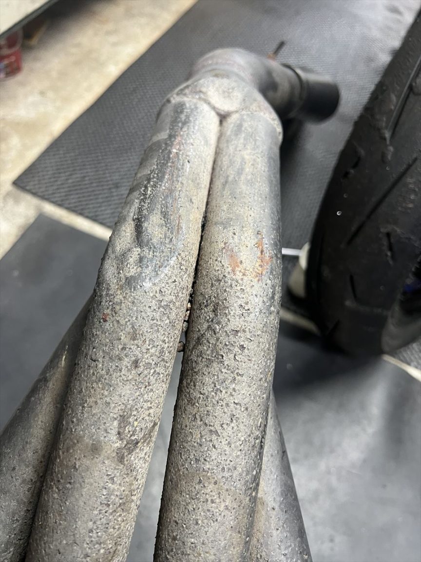 マフラーは全面的に深いサビが出ています。そろそろ交換時期のようですね。