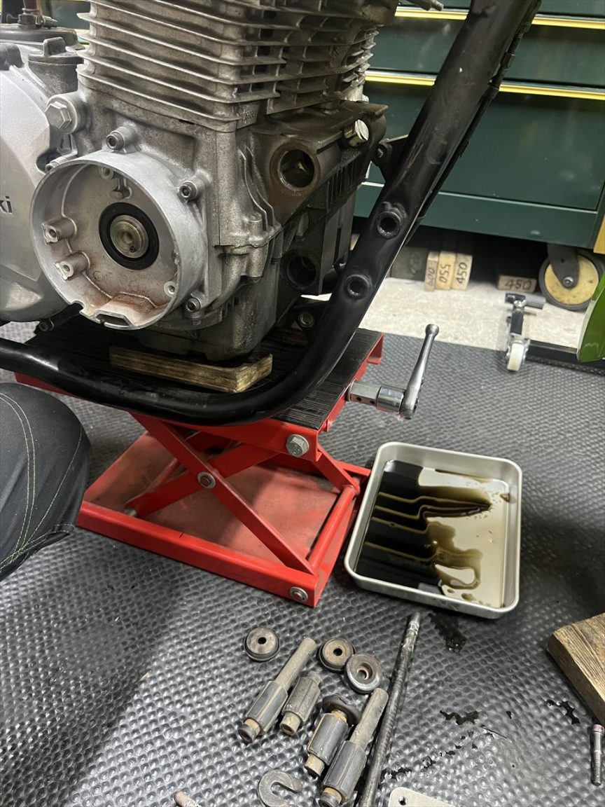 エンジンマウントを切り離し、5センチくらい持ち上げたらインシュレーターを抜き取ります。