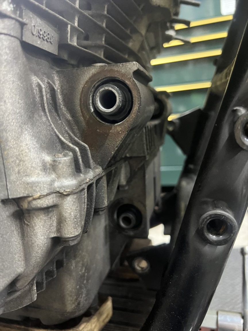 リヤのマウントはリジットなので、12ミリのマウントボルトがこのように曲がります。