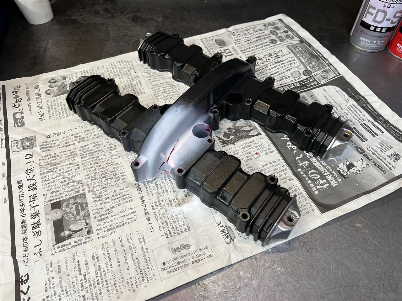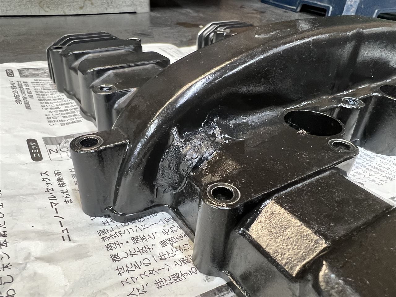 このヘッドカバーは、既にクラックが入ってオイル漏れしたことがあり、応急処置としてシリコンボンドで補修していました。しばらくはオイル漏れが止まっていましたが、前回の走行から再びオイルが漏れてきました。