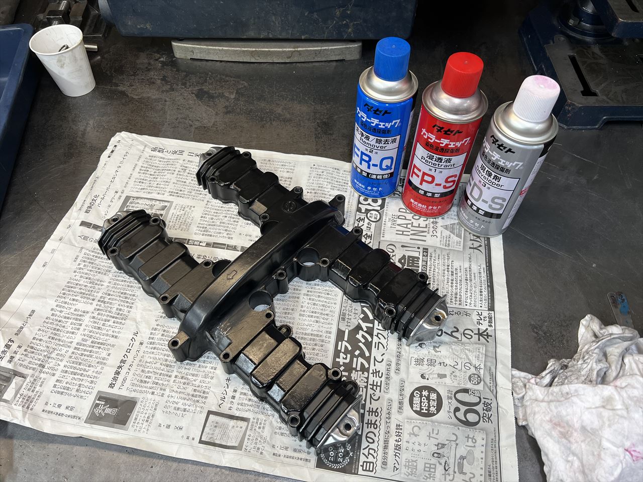 洗浄後、浸透液を塗布して10分くらい待ちます。