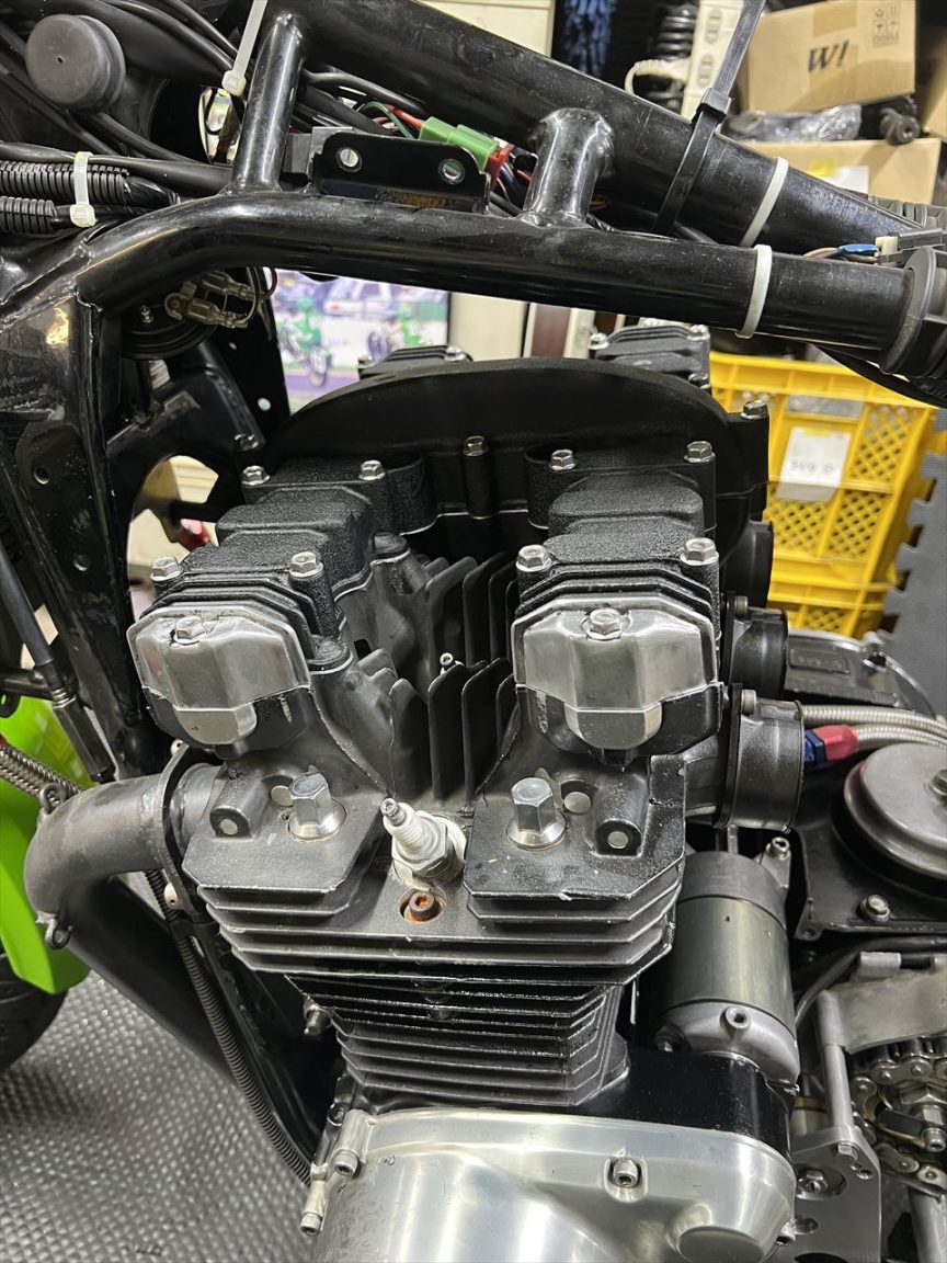ストックしている別のヘッドカバーを使います。全面結晶塗装だったので、サイドだけ簡単にバフ仕上げしておきました。これは肉厚のあるタイプです。