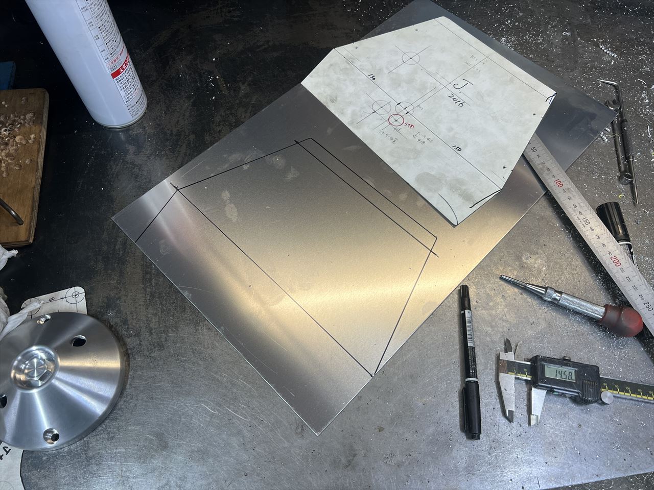 こちらはキャブ後方隔壁です。ジュラルミン板から切り出します。