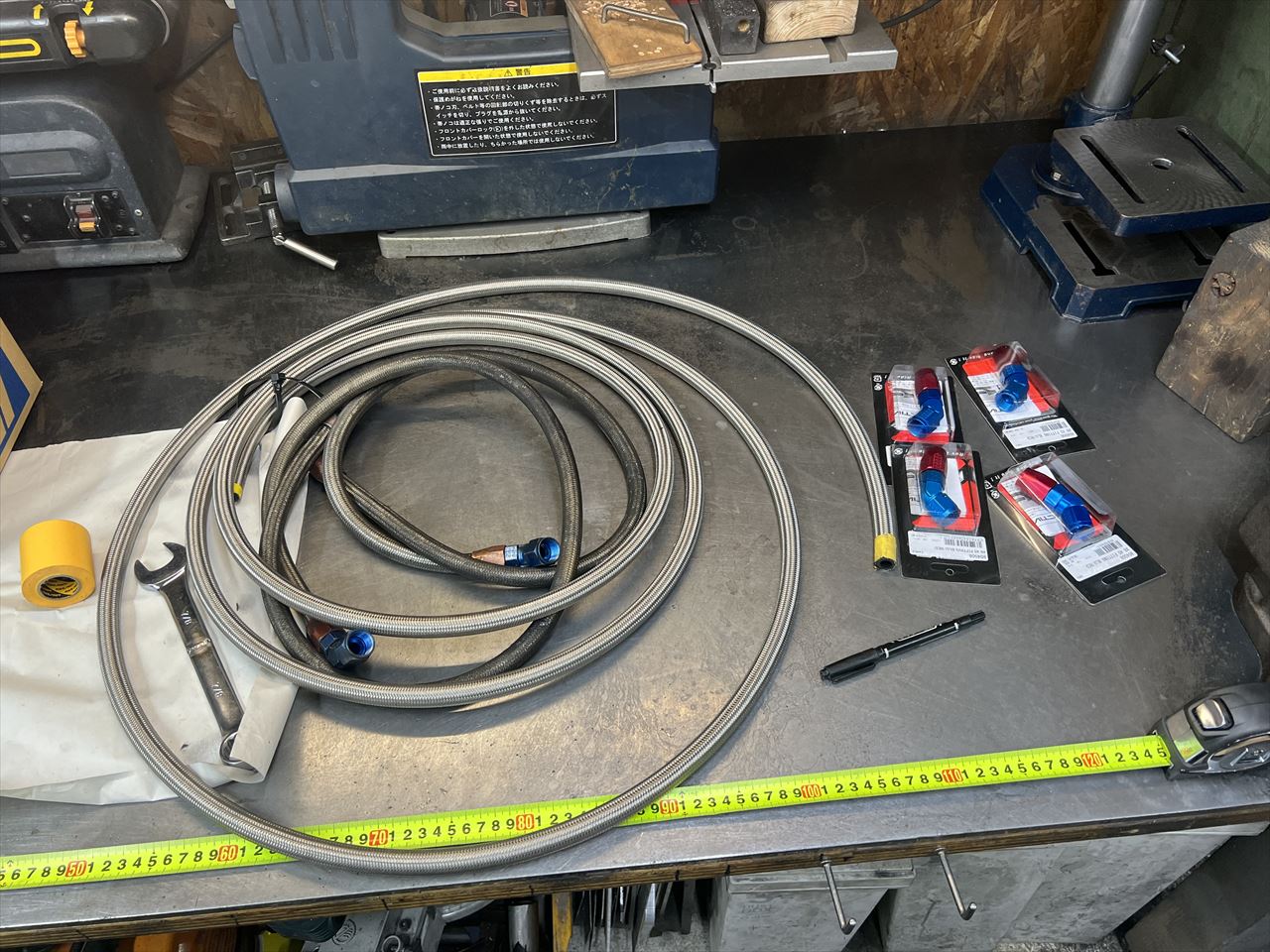 ホースを少し長めに切り出し、片側にフィッティングを取り付け、現車合わせで長さを決めて作ります。