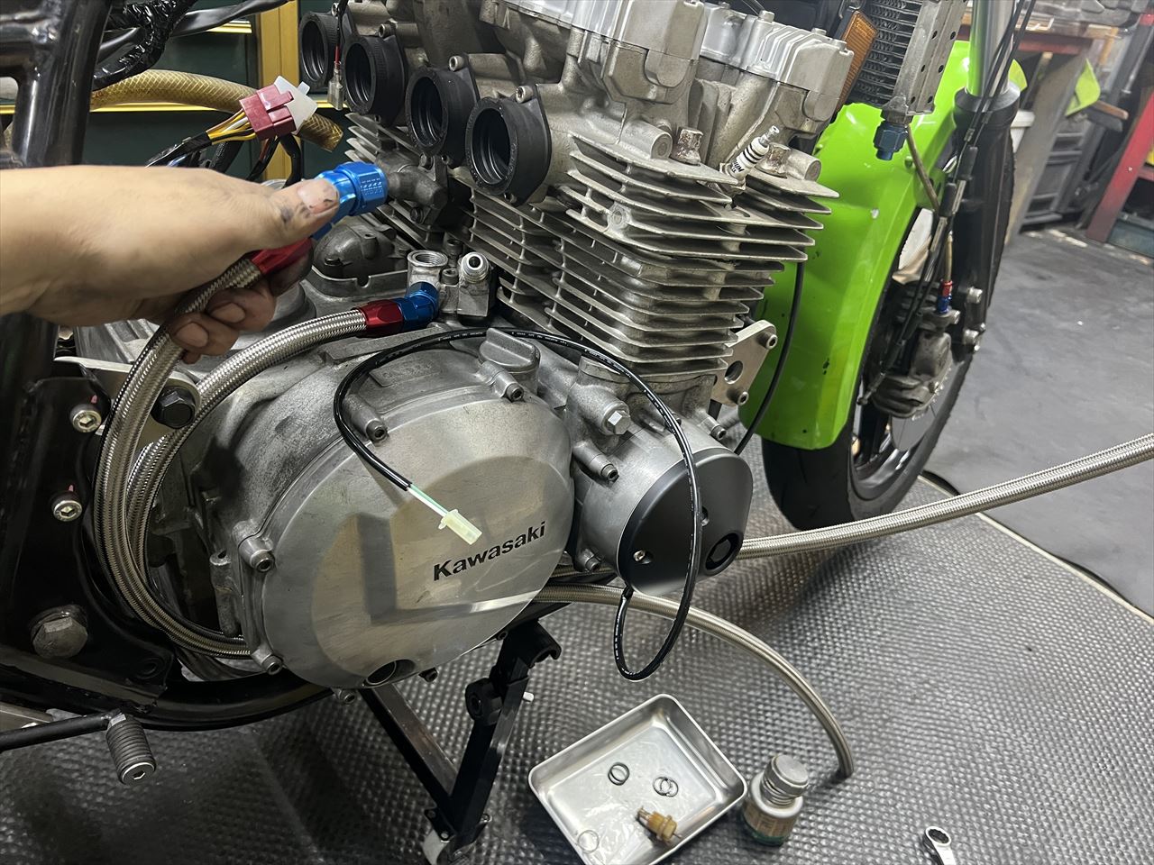 Z1000J2 S.K様 キャリパーサポートやオイルホースの製作