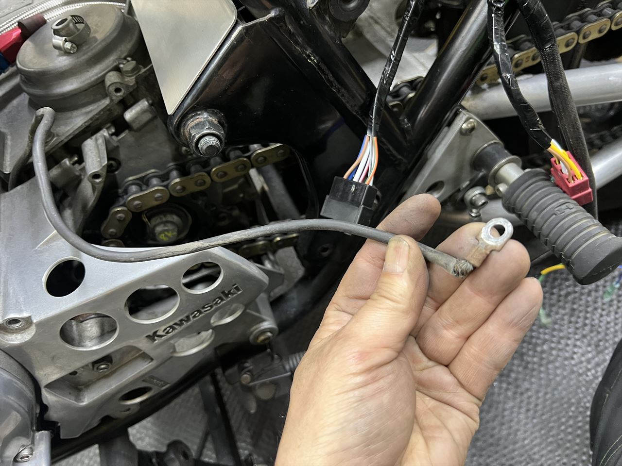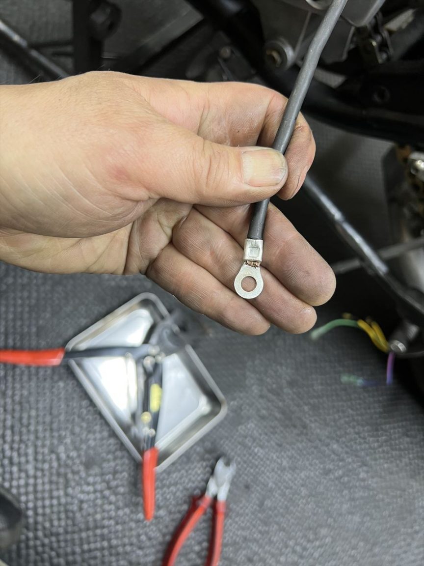 スターターケーブルは、ターミナルが痛んでいるので修理します。