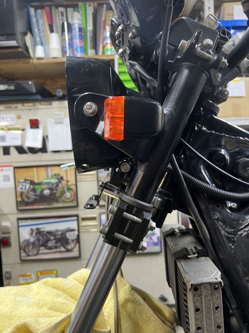 ヘッドライトケースを付け、ステーの位置を微調整します。