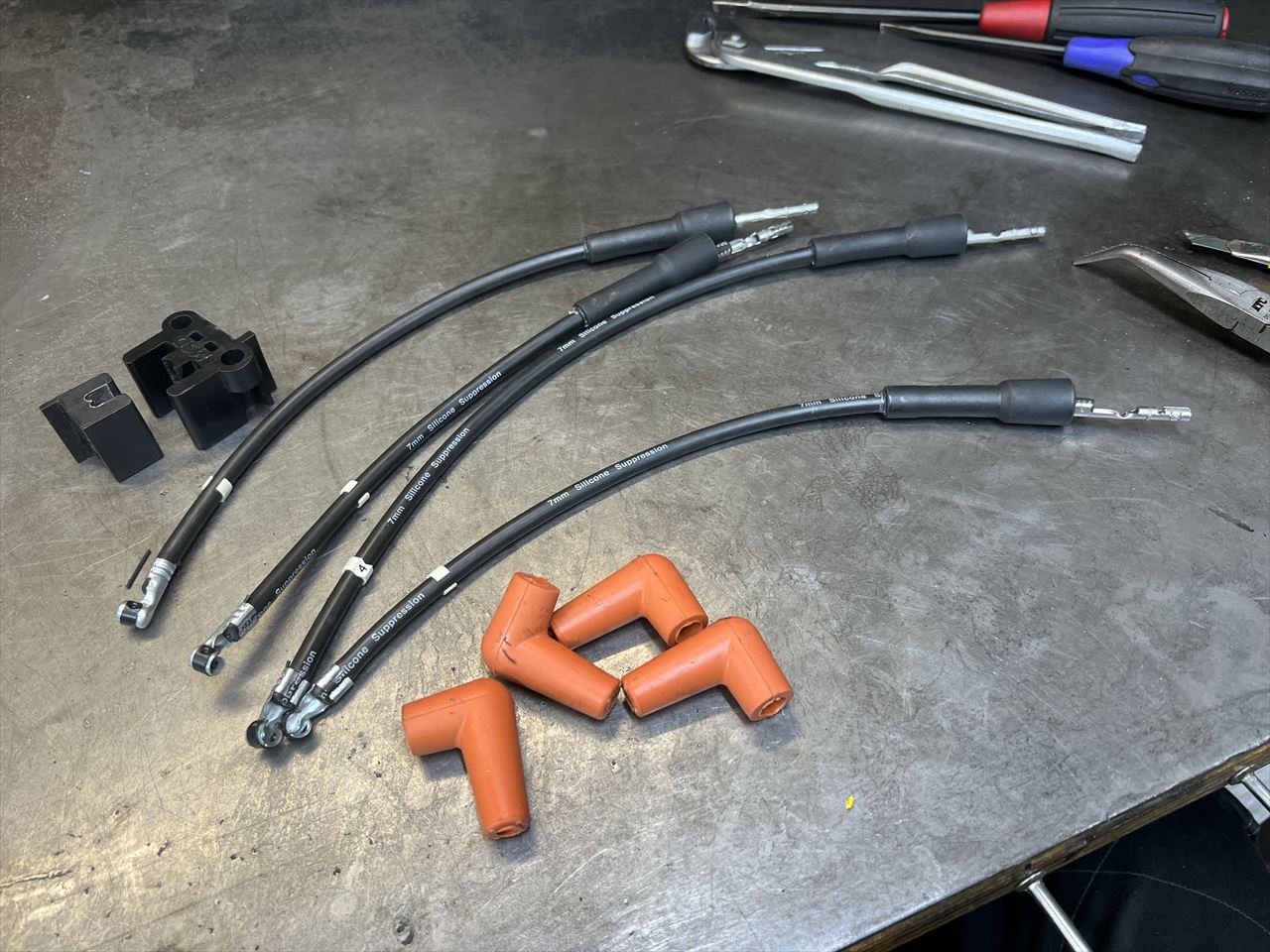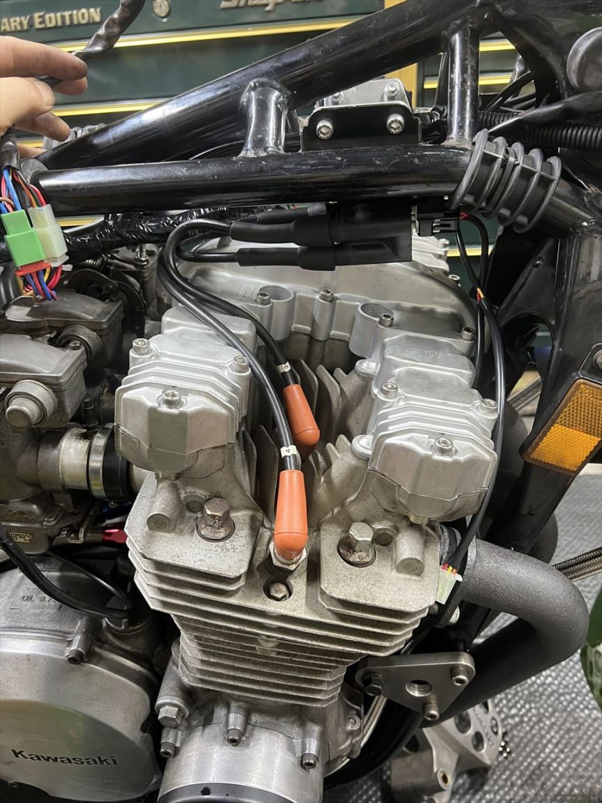 オレンジプラグキャップを使った新しいプラグコードを現車合わせで製作します。