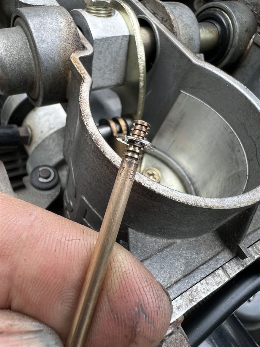 前回は2014年にキャブセッティングしていますが、経年でエンジンなどの状態も変化し、少し調整した方がいい状態です。この開度で関係してくるのは主にジェットニードルです。ストレート径とクリップ段を予め変更しておきます。