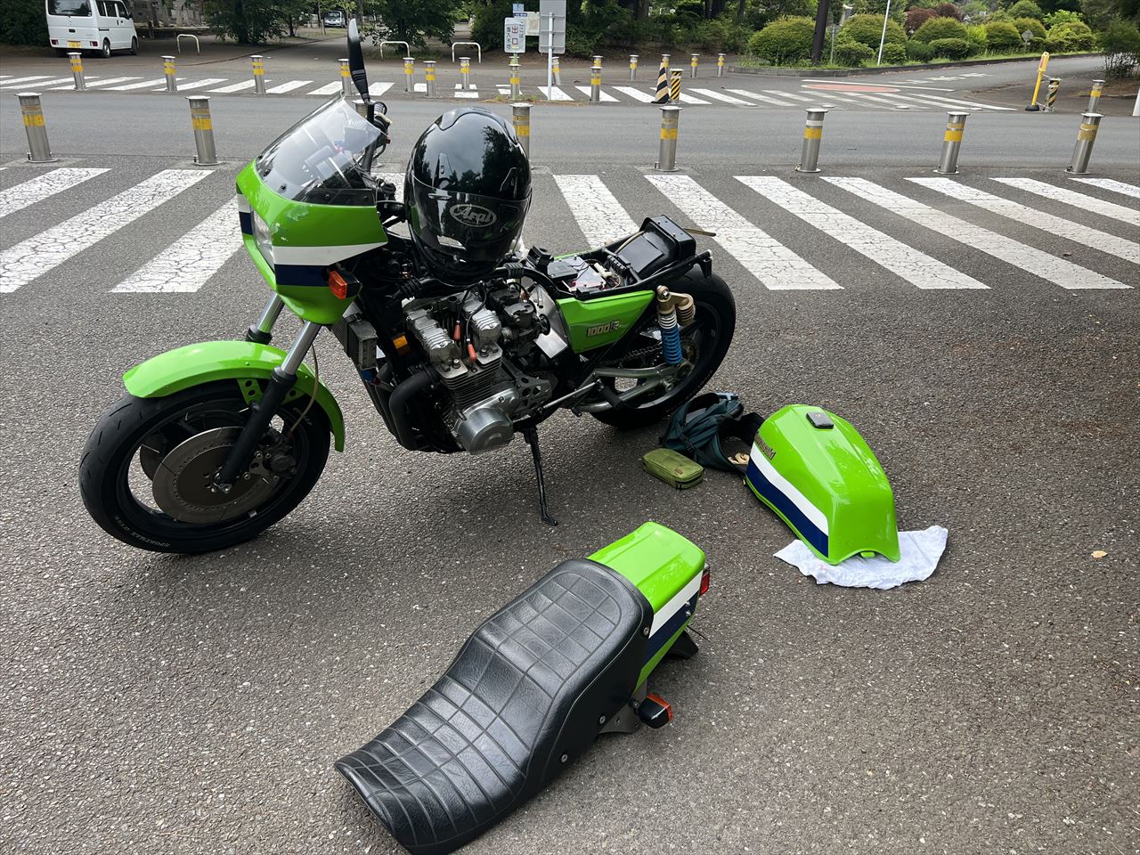 先ずはガレージ周辺の一般道でセッティングします。