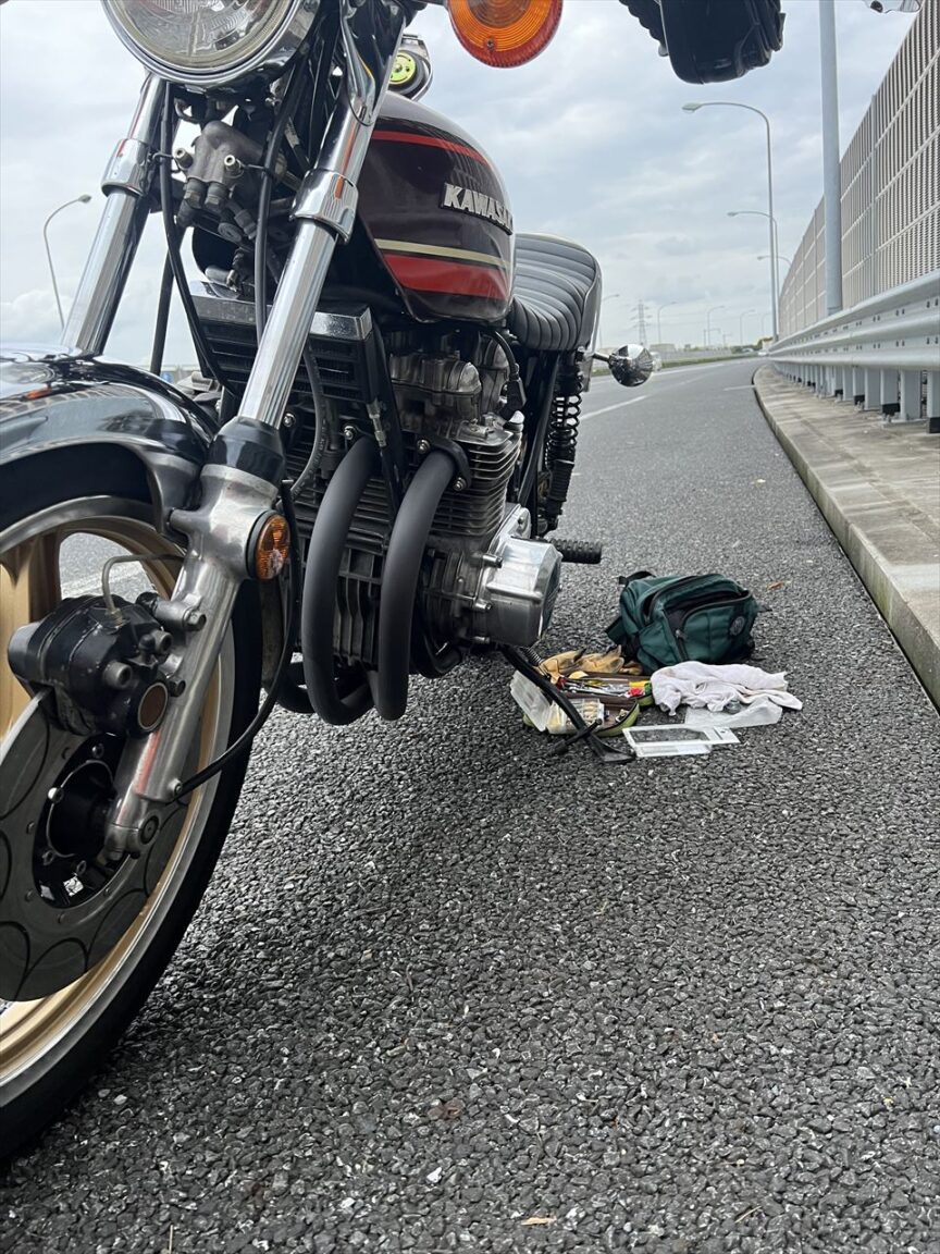 ガレージ周辺でスロットル低開度域は問題無いことを確認し、メインジェット選定のため高速道へ入ります。