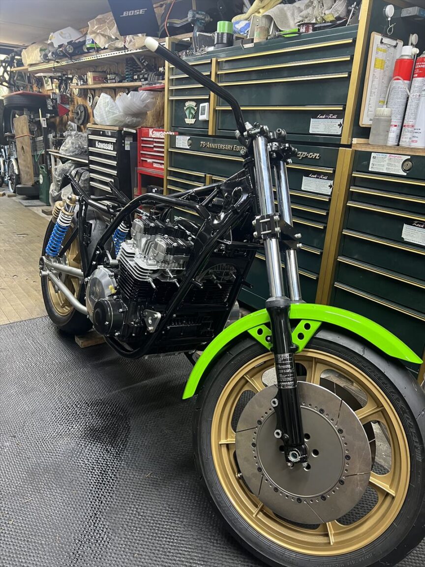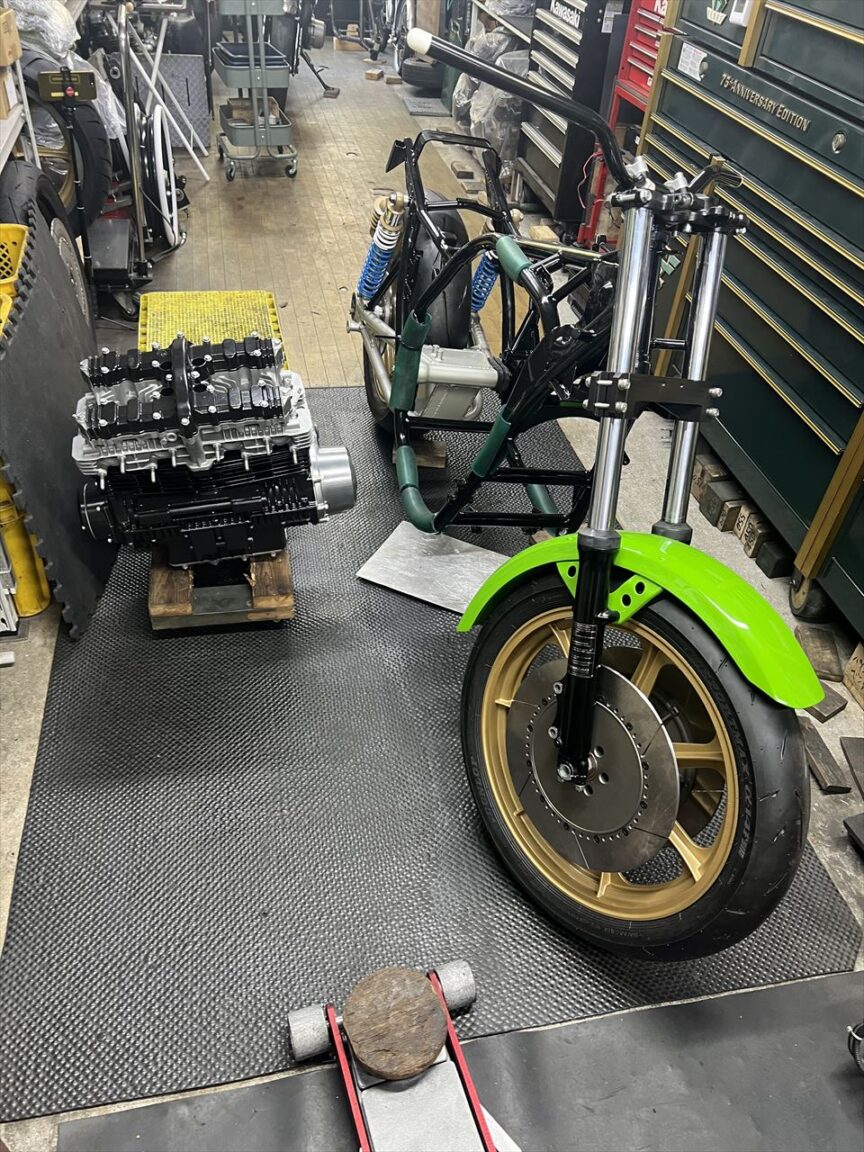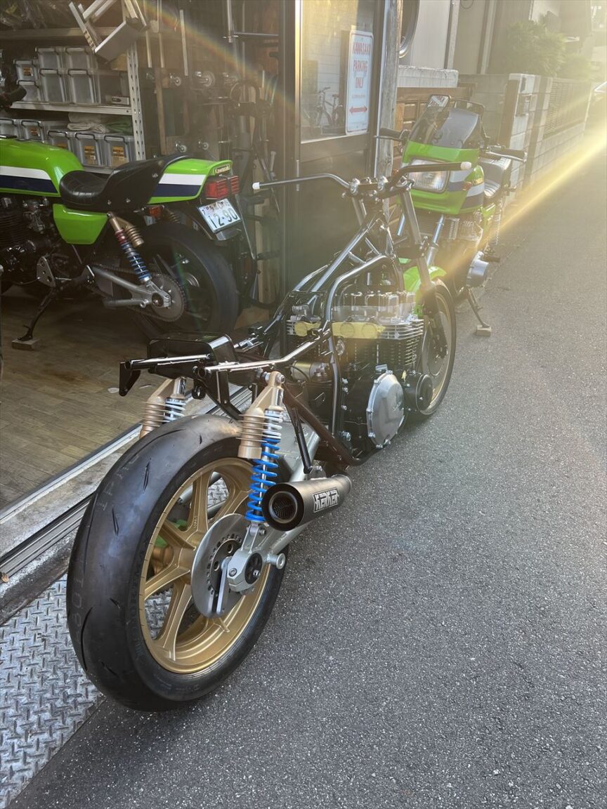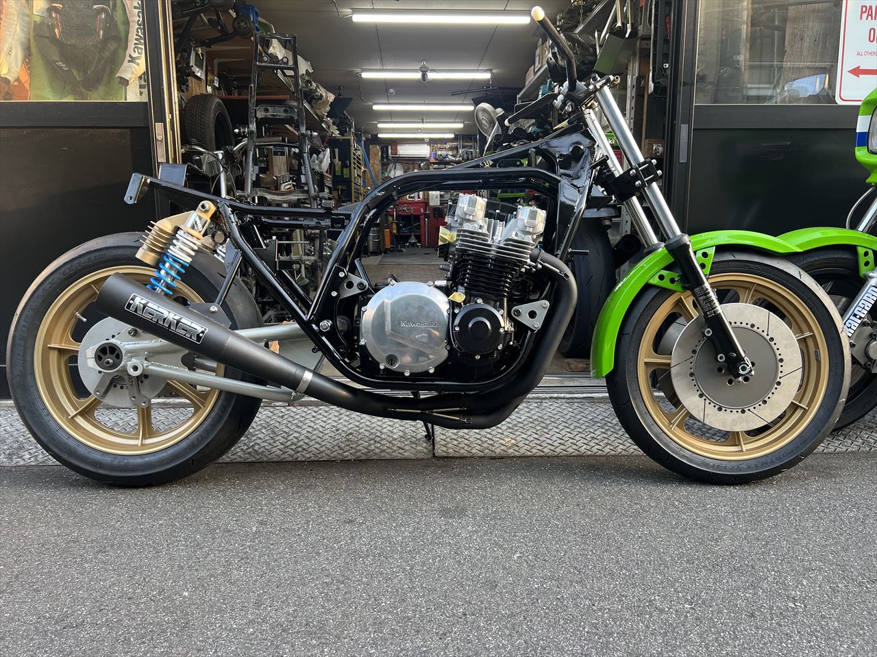 Z1000J2 Y.H様 ワークスS1仕様製作 エンジン車載 マフラー取り付け