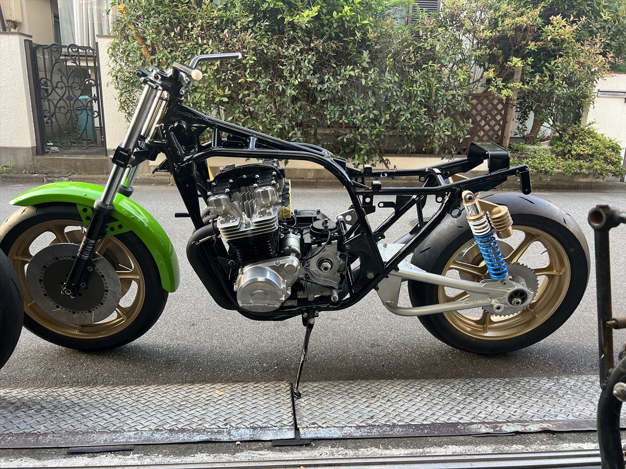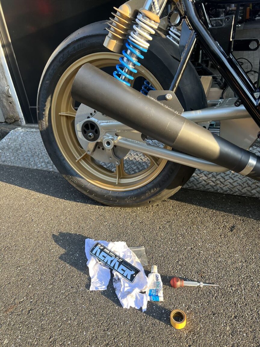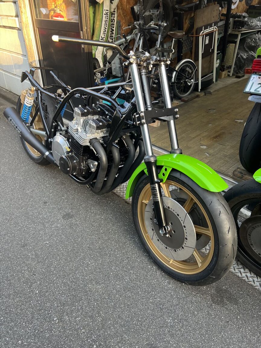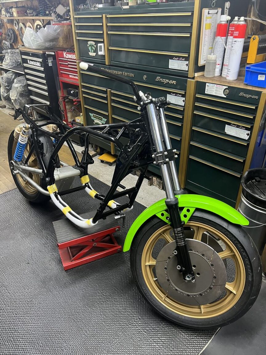 Z1000J2 Y.H様 ワークスS1仕様製作 エンジン車載 マフラー取り付け