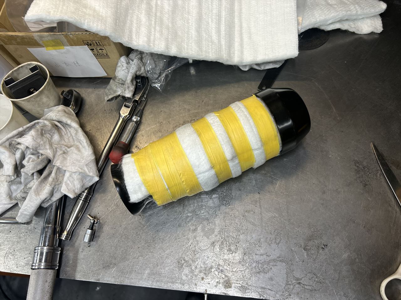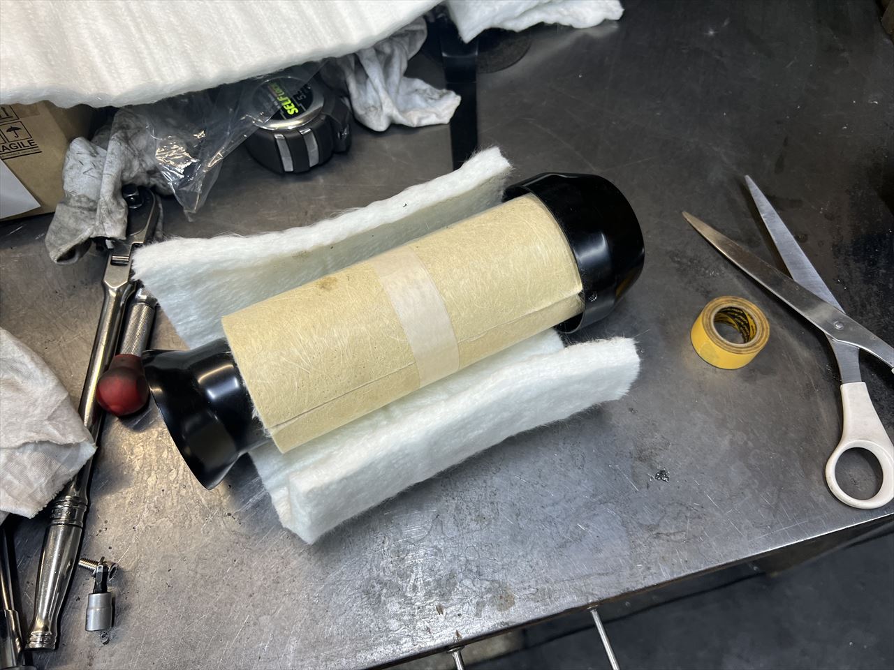 マフラーのバッフルは、グラスウールを増します。