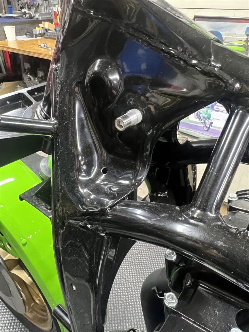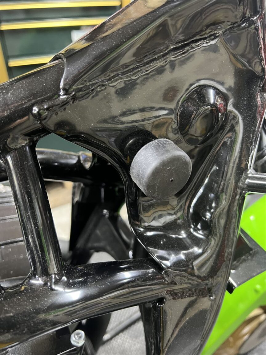 右側はこんな感じ。リヤマスターはニンジャ250純正新品を使います。