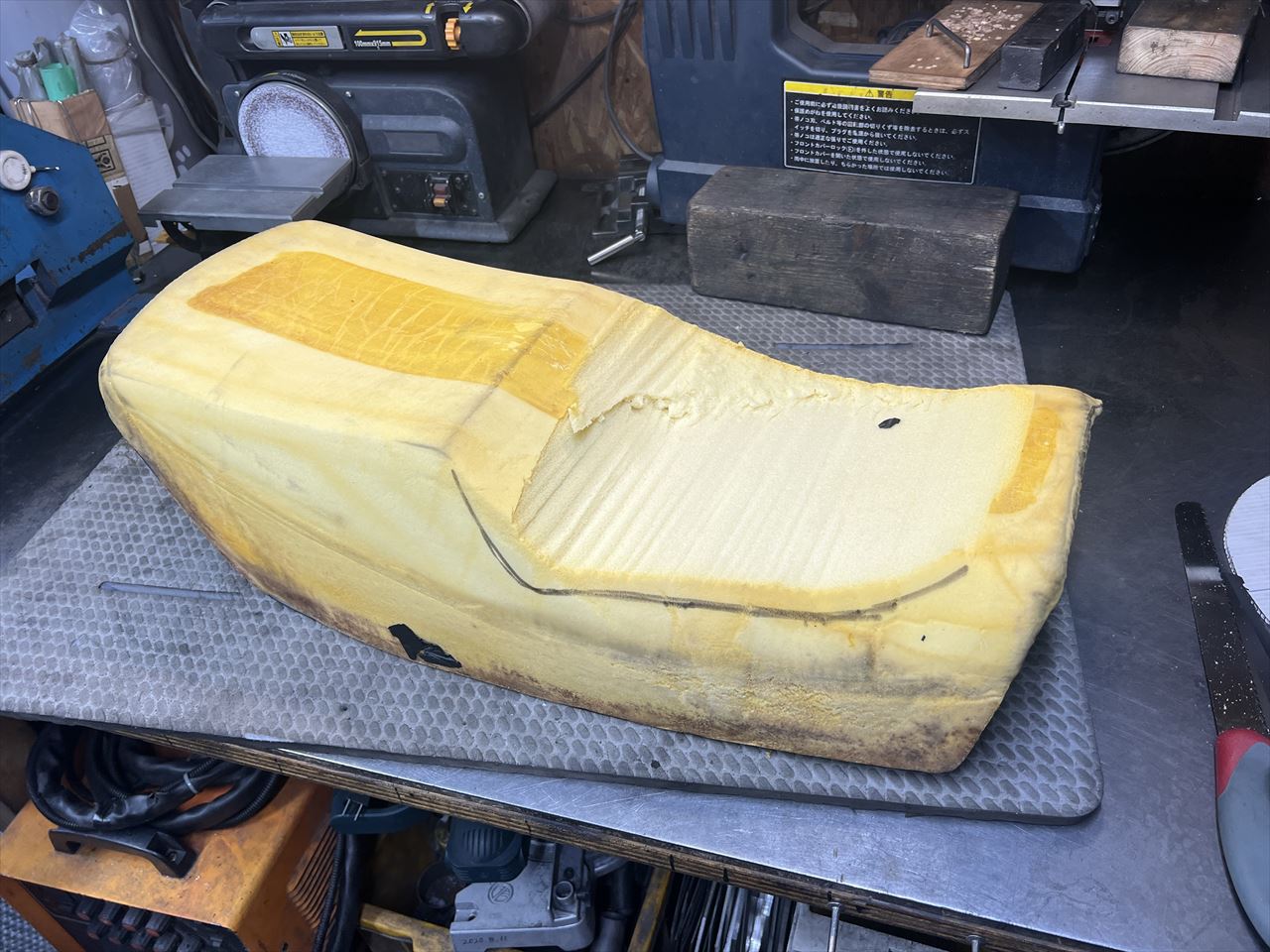 バットモーターサイクルで仕入れた車両は、車両の引き取りより先だってシートの改造をします。