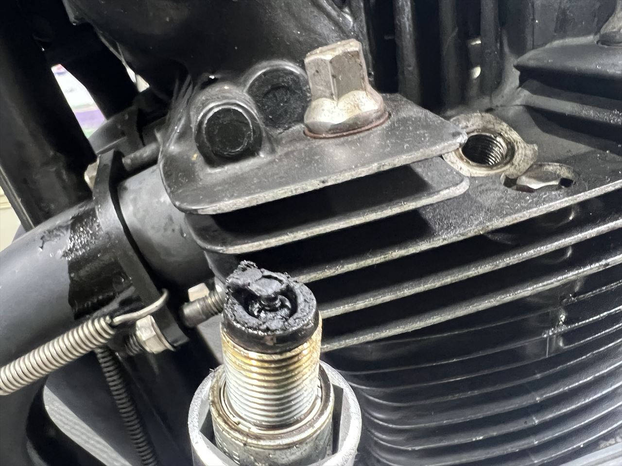 プラグもこんな感じで濡れており、カーボンの堆積も多かったです。