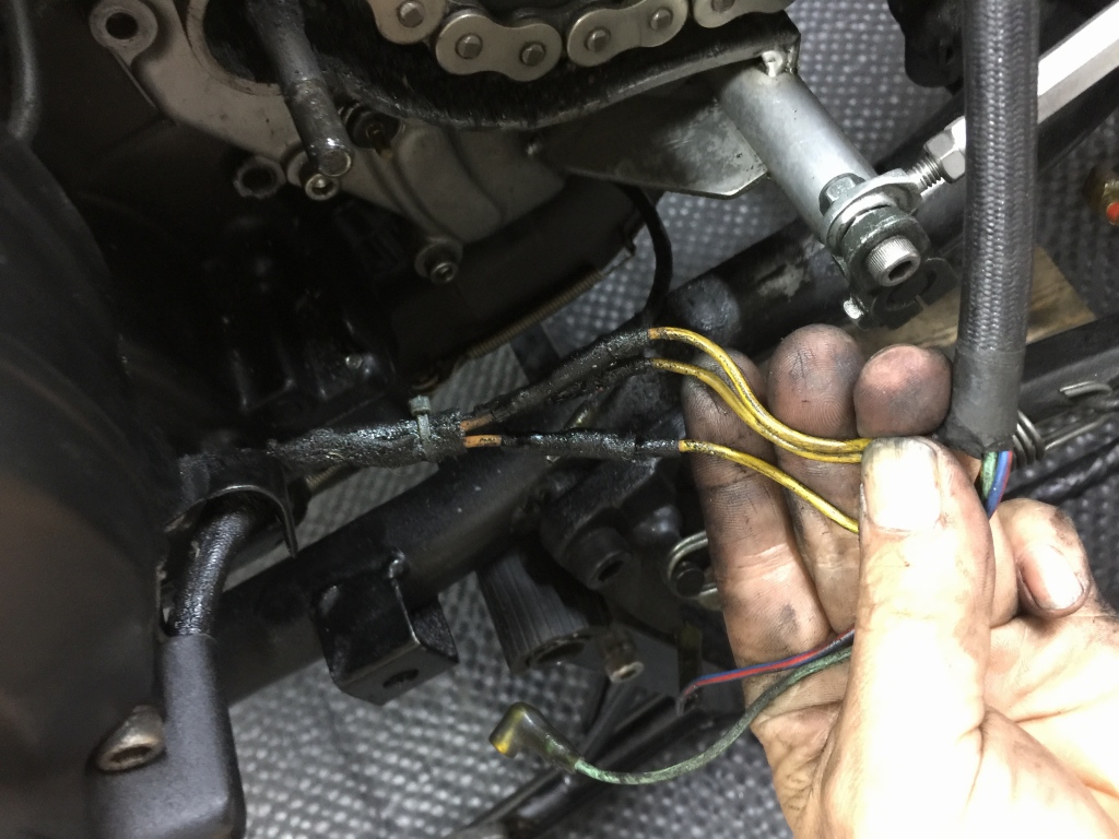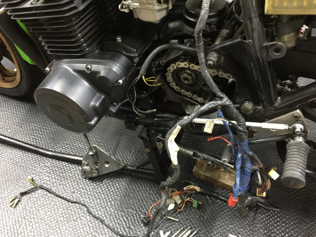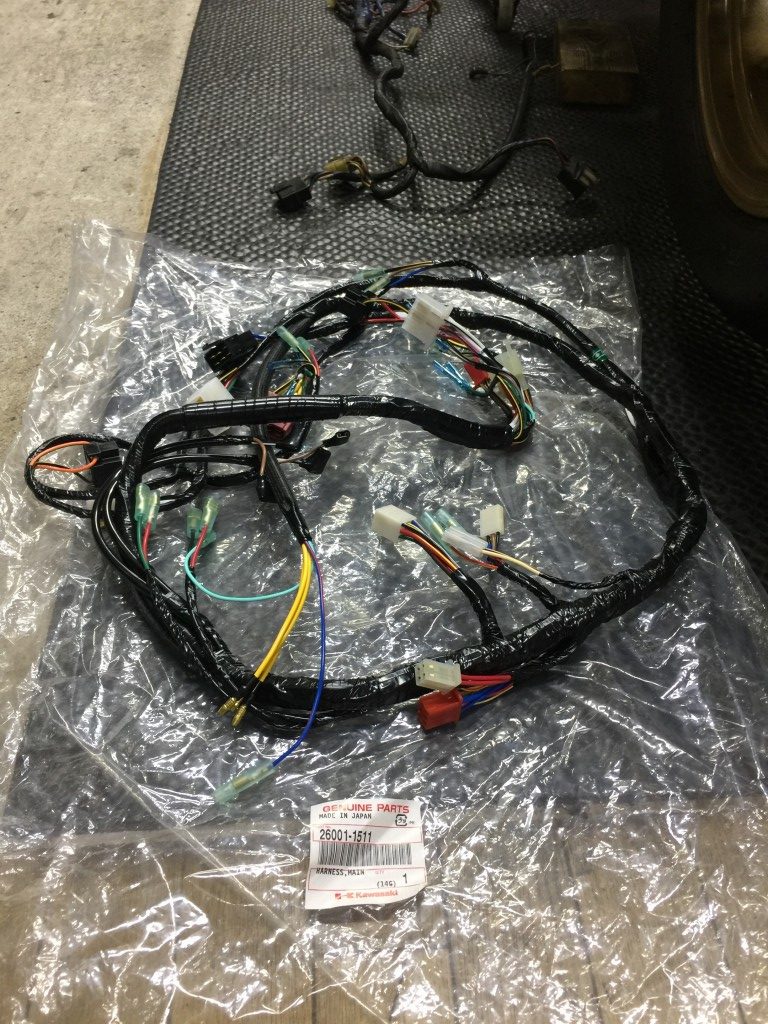このメインハーネスは、この1100B2新車時のものでしょう。インジェクション系統へのコネクターなどもあります。