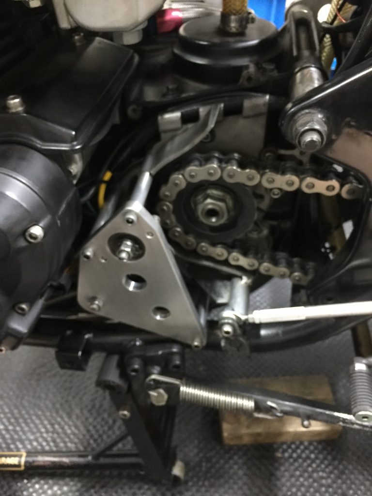 ワークスタイプのオイルクーラーがあるため、ハーネスをタンクとフレームの間に通しやすくするためです。