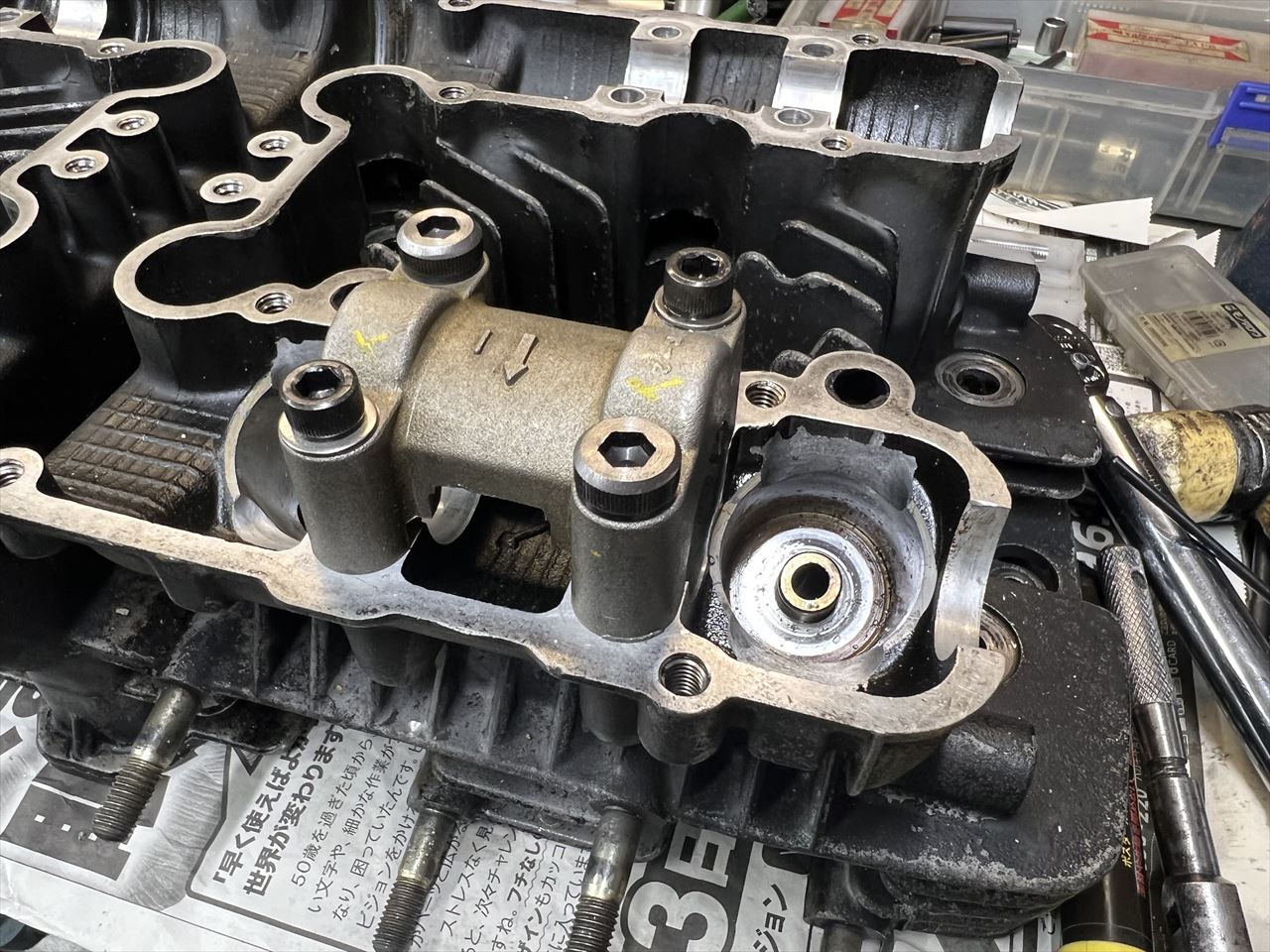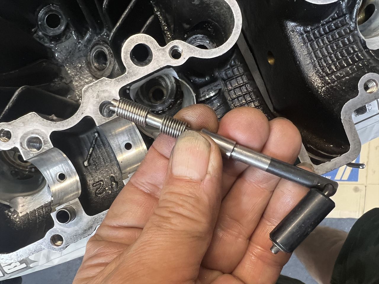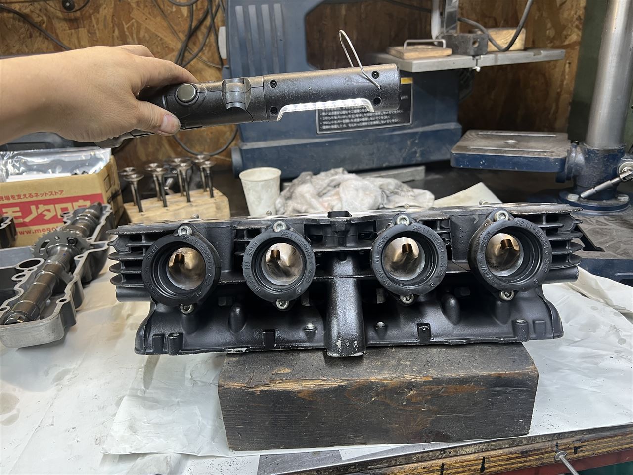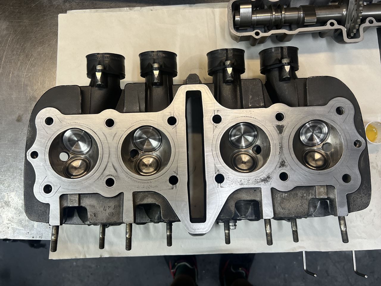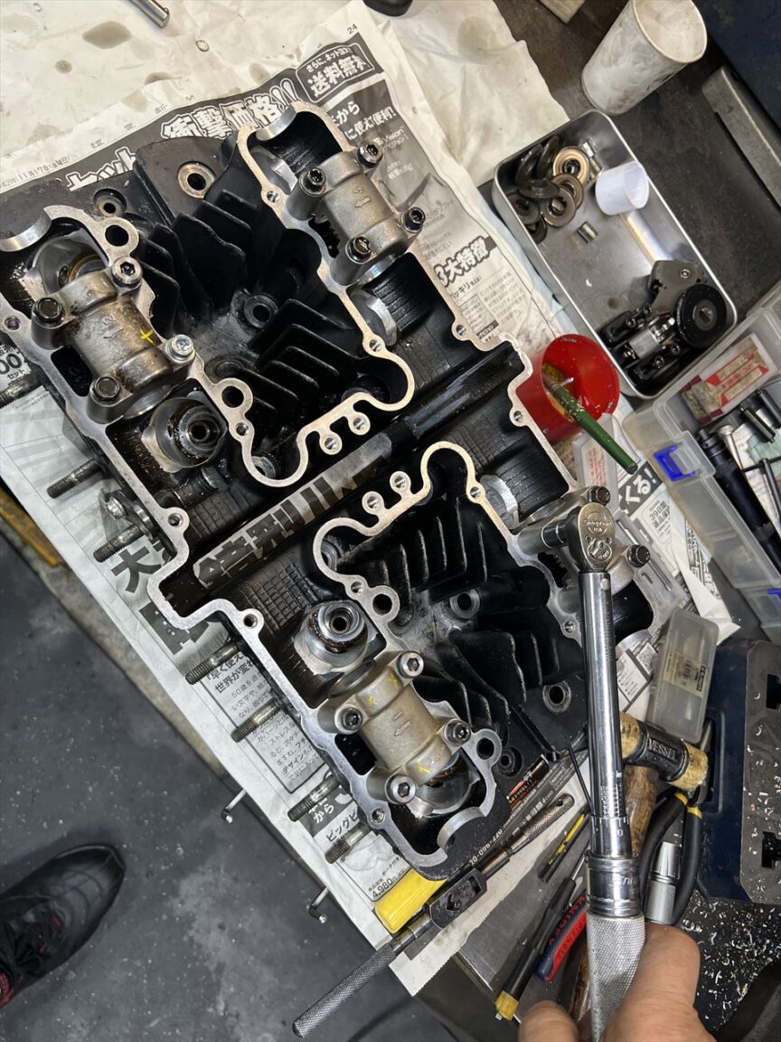 バルブを組み付けます。ヘッドは修復完了です。