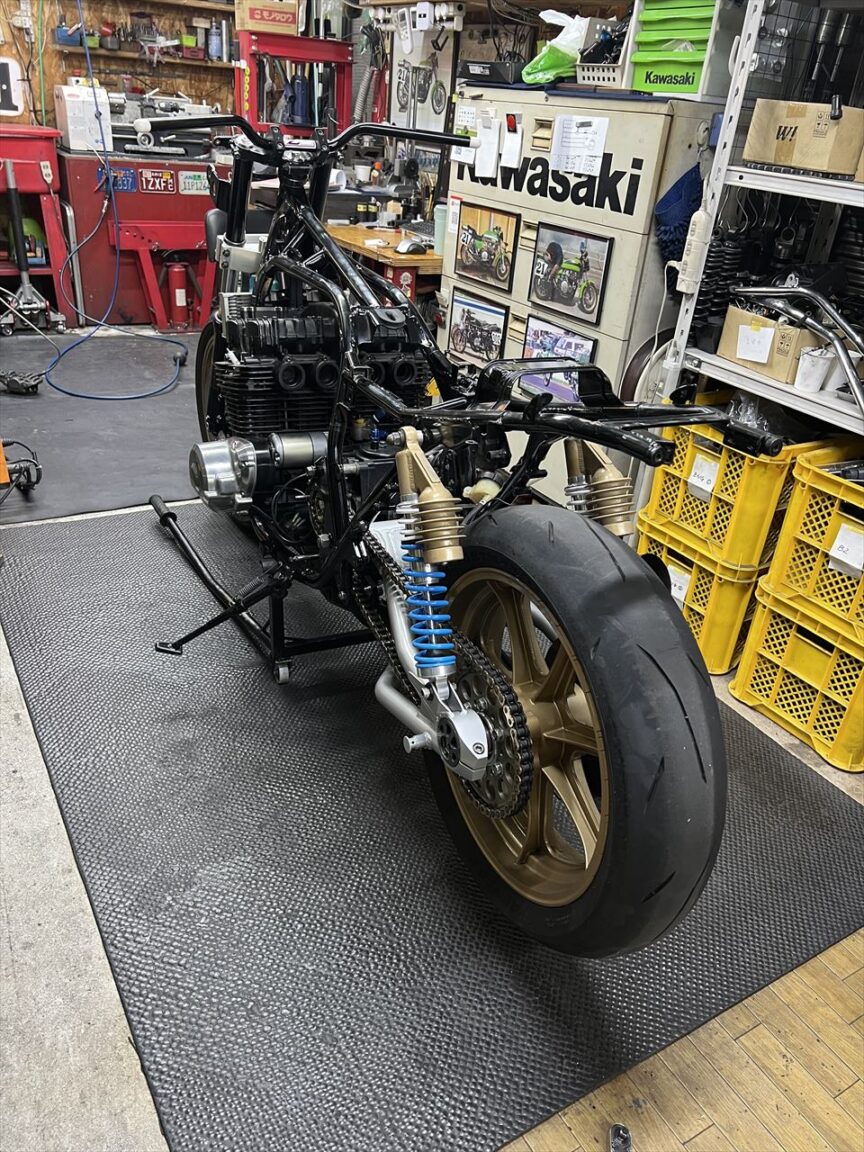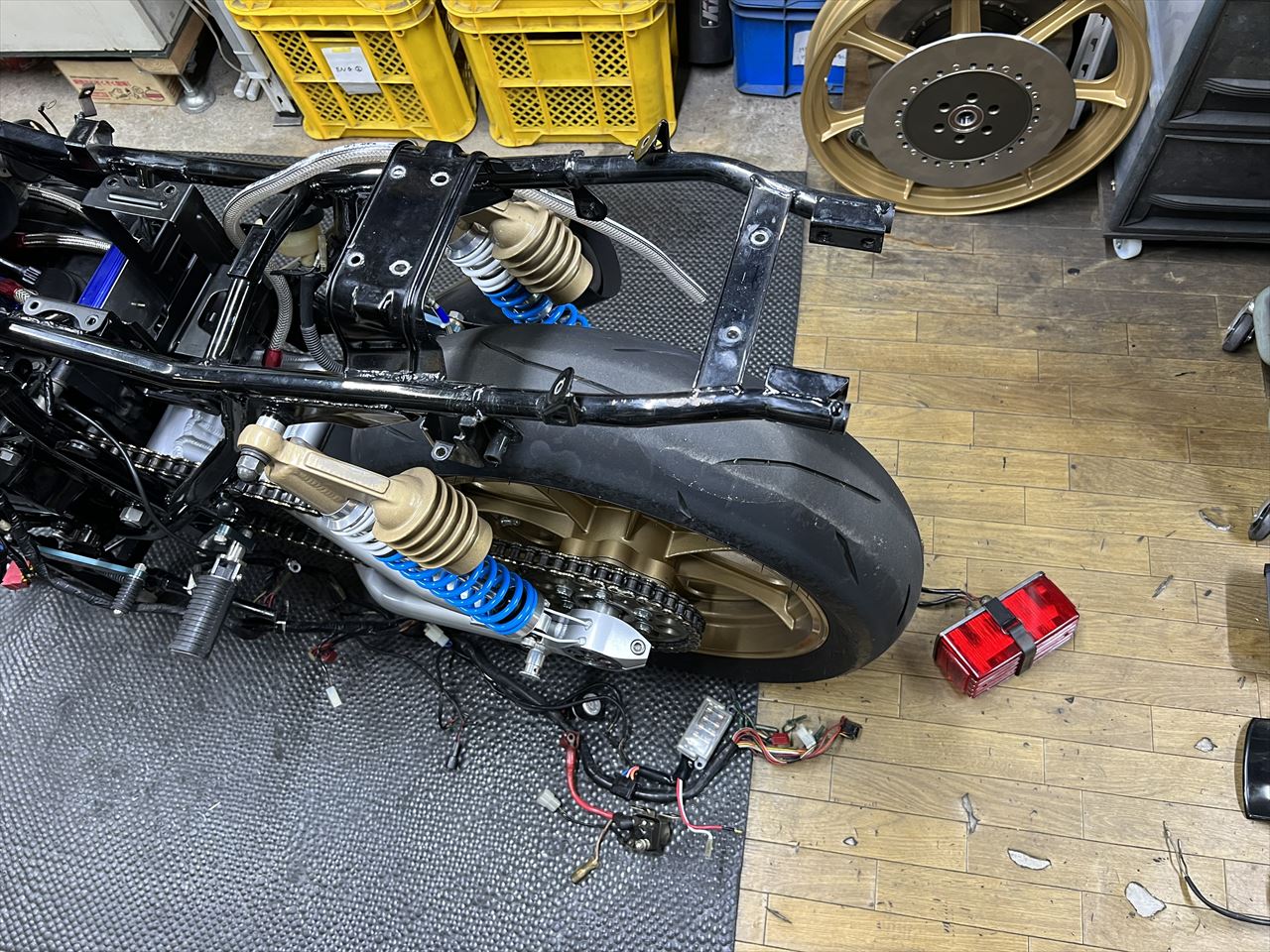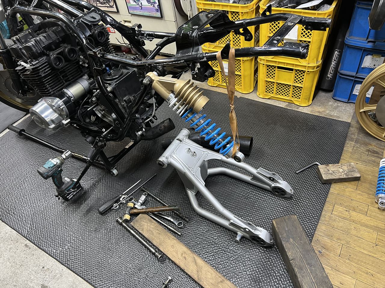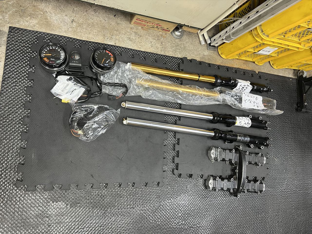 数セットあるフォークは、組み替えて一番いい部品を使用します。メーター周りもマルメーターに変更予定。