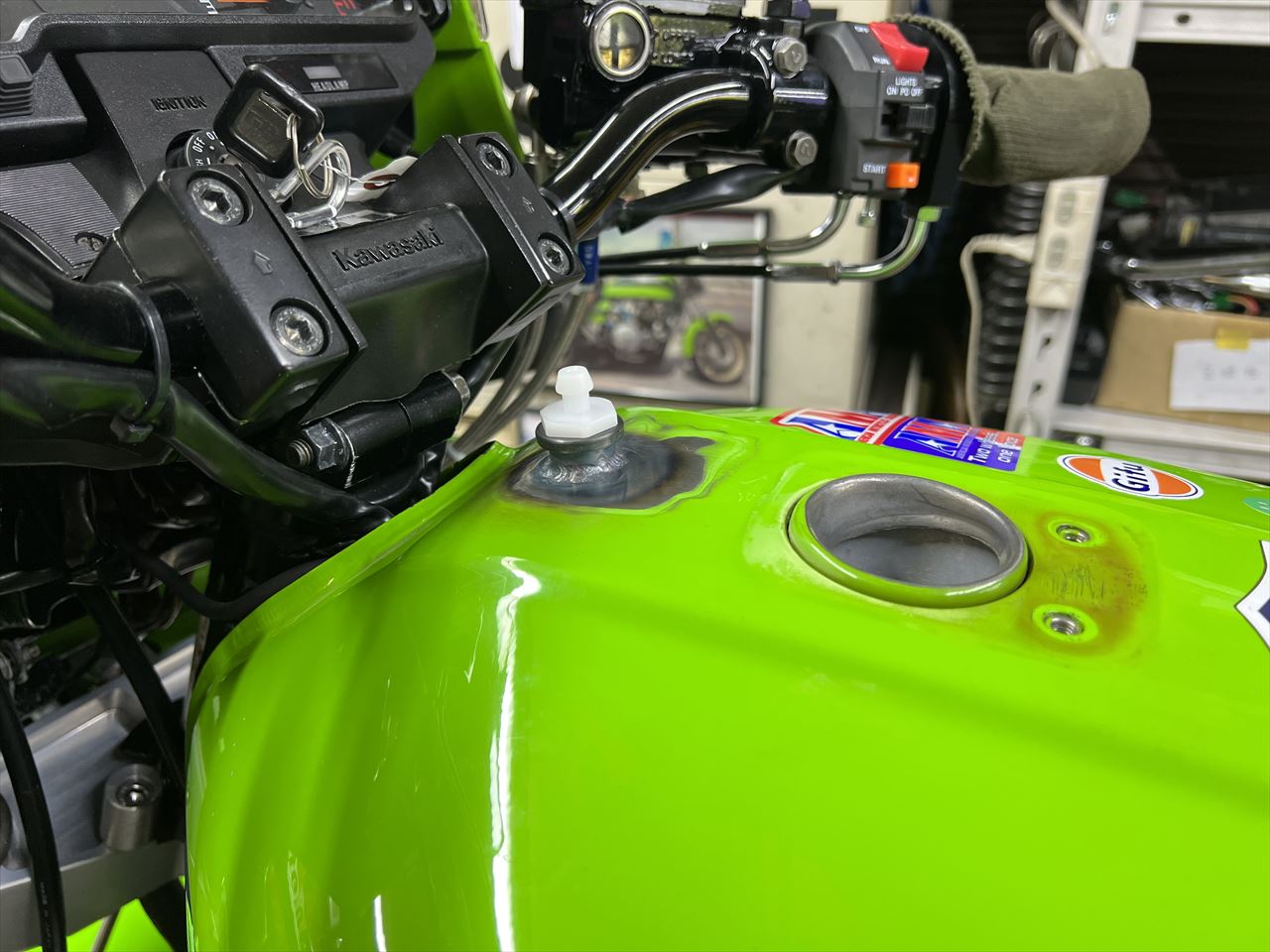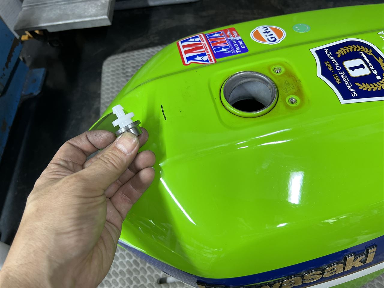タンクは改造してからR1カラーに塗装します。キャップの前にはS1ブリーザーを取り付けます。