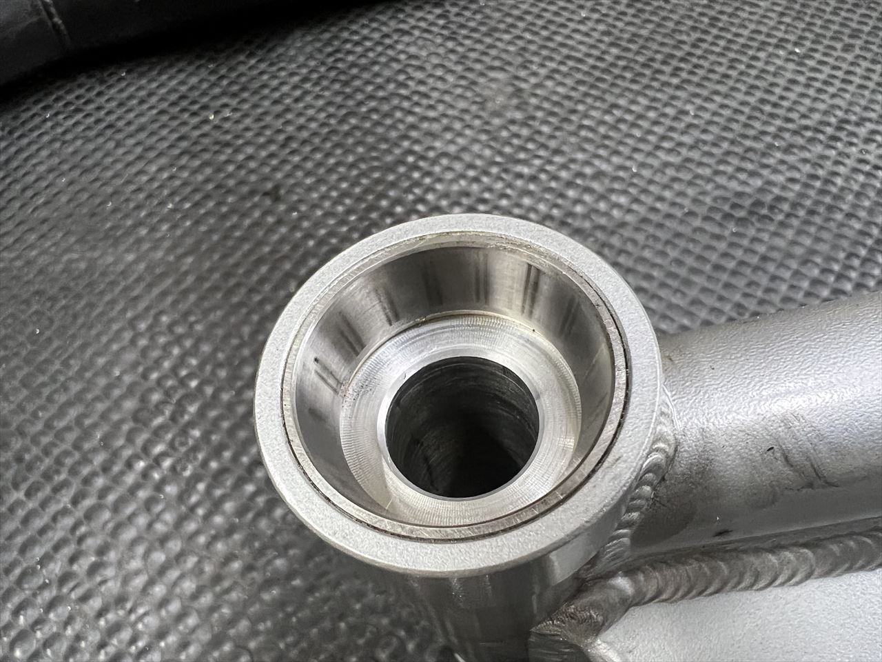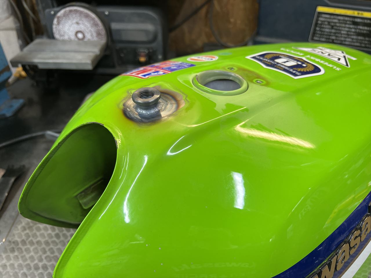 元のコック穴を溶接で埋め、後方にM22ミリネジのコックアダプターを溶接します。最後にエア圧で漏れチェックします。