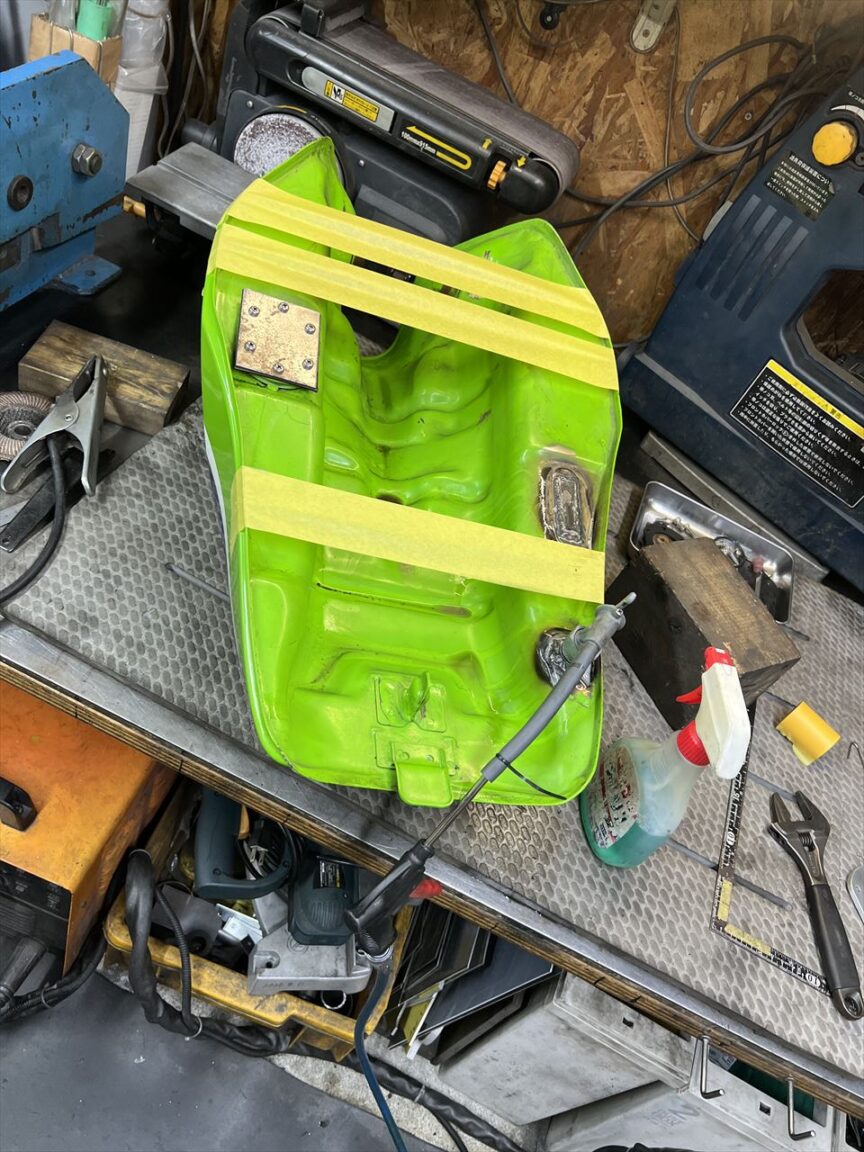 ブリーザーを溶接します。タンク側には2ミリの穴を開けてあります。