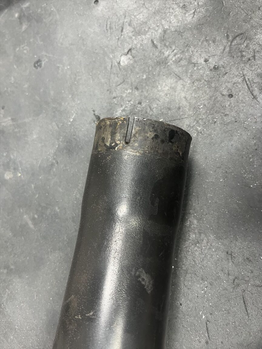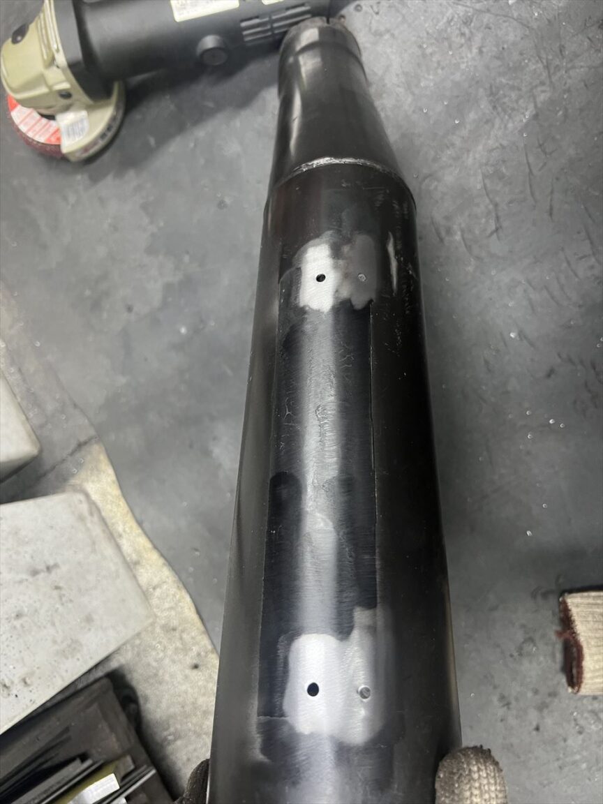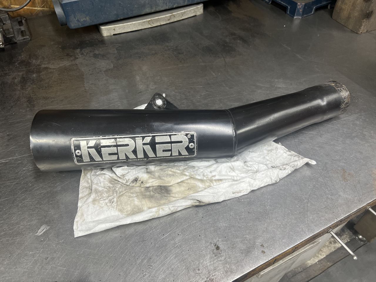 バッフルを外そうとしますが、錆びて固着して外れません。一旦切断してからでないと外れないかもしれないので、傷んだこのサイレンサーは使用せずマフラー交換することに。