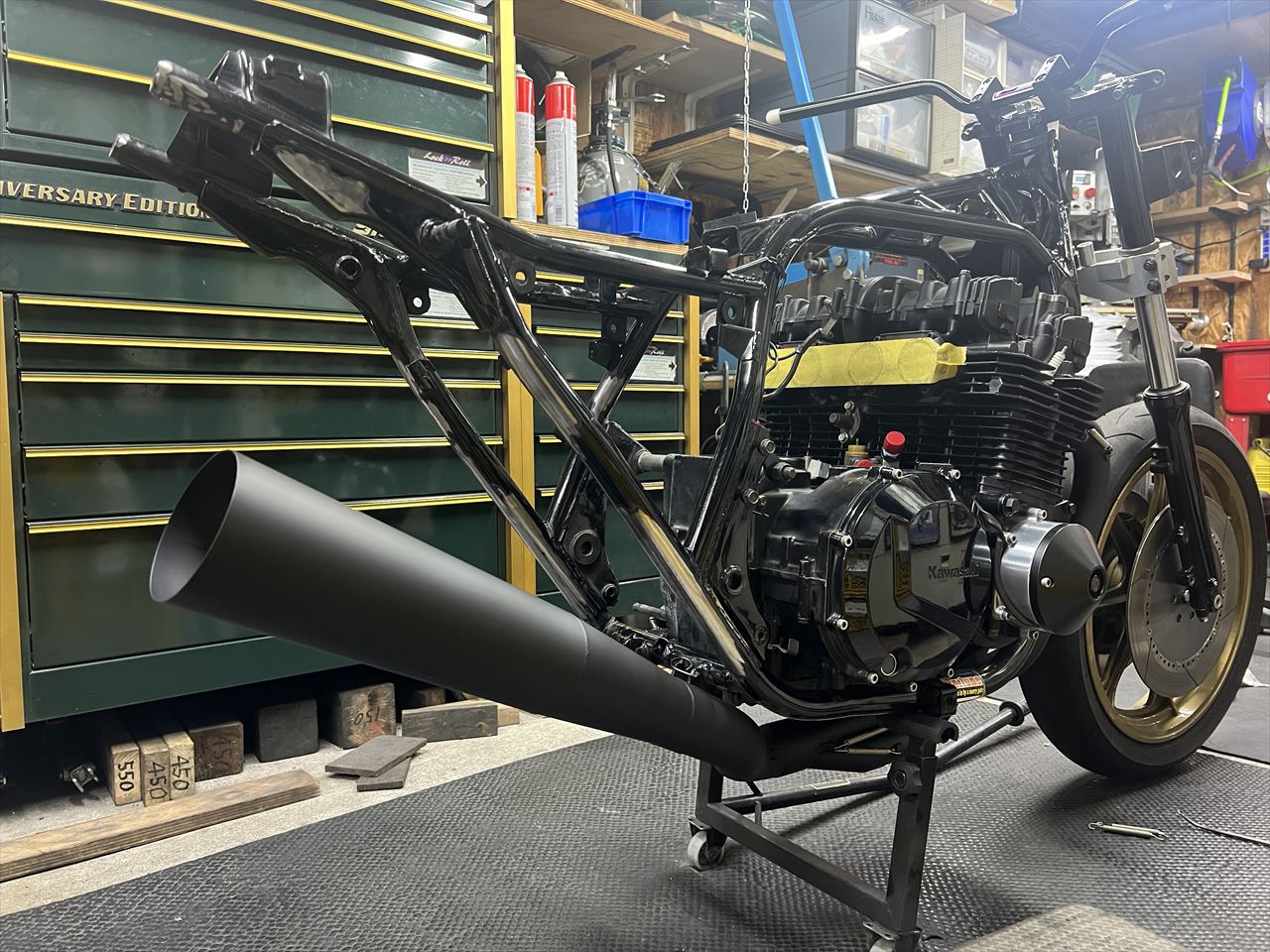 ワークスタイプの特徴点はことら。集合部直後から右側に張り出してきます。S1スイングアームのキャッチタンクを交わす際にも好都合な形状です。