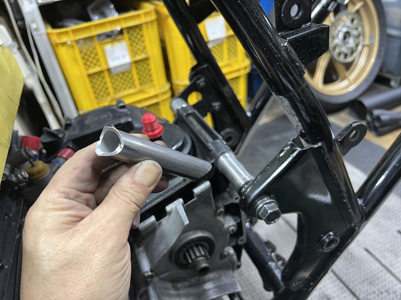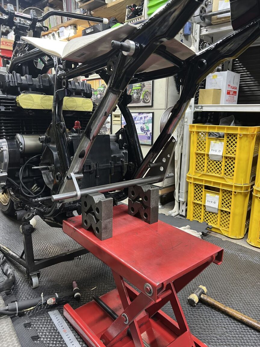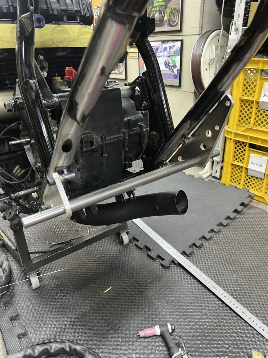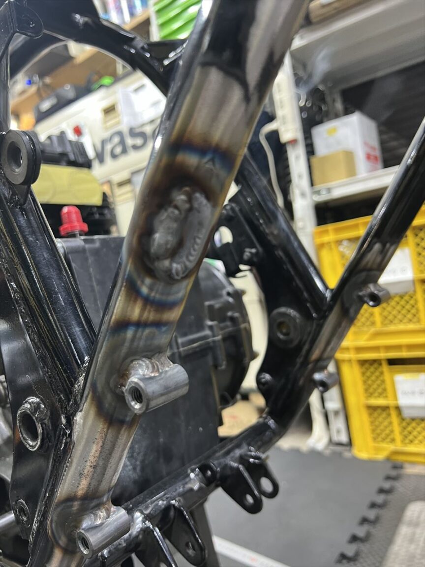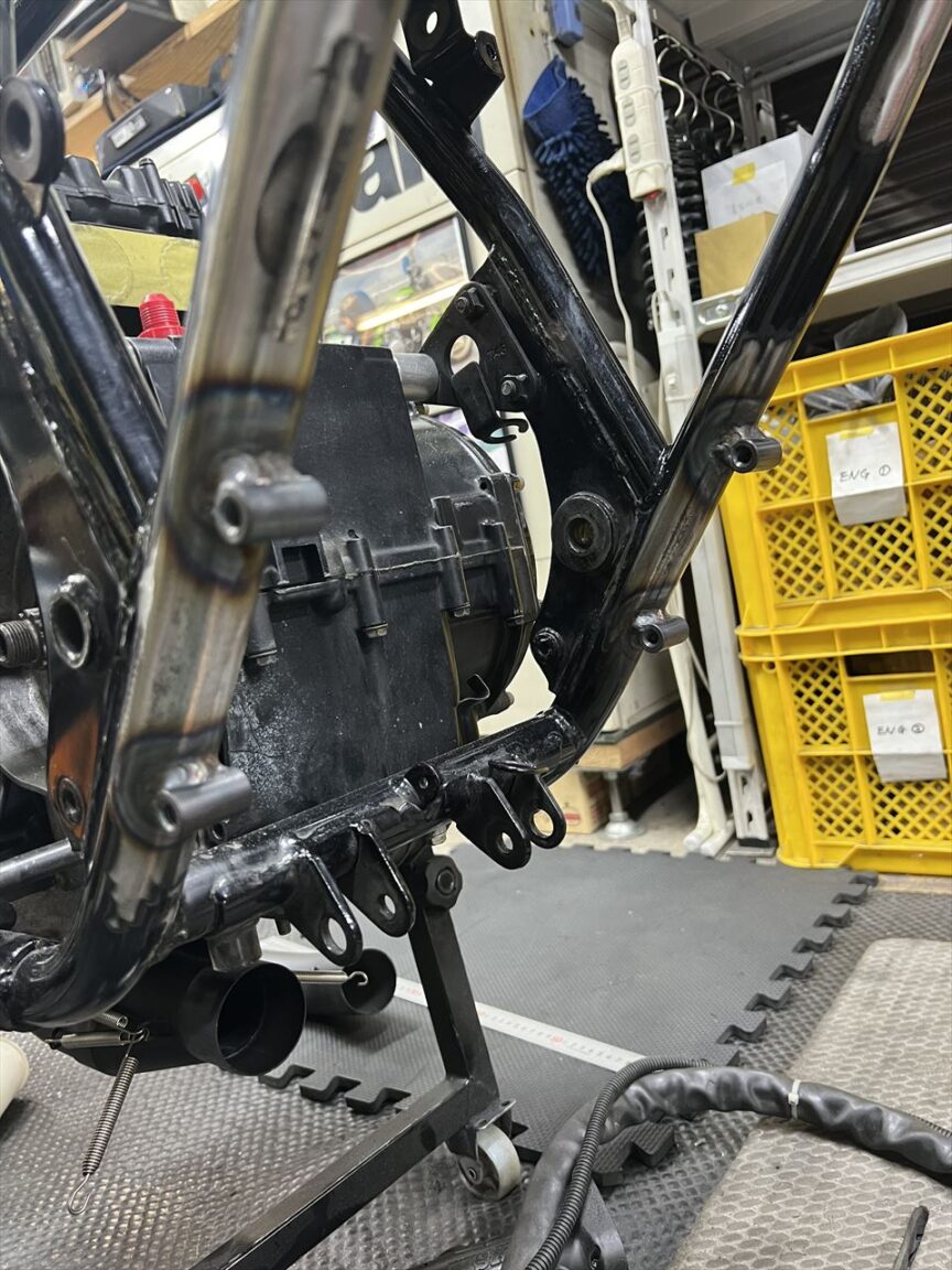 フレーム加工の続きです。リヤのエンジンマウントを改造し、S1タイプの補強を入れます。