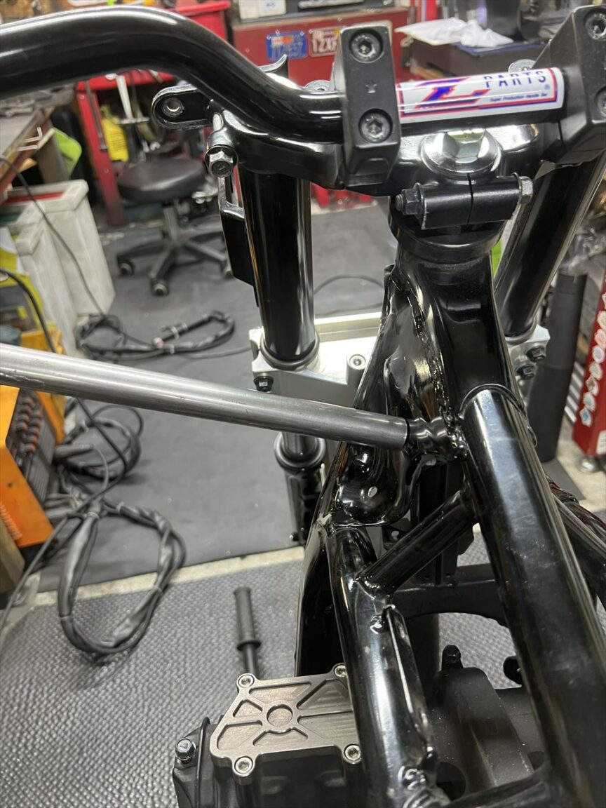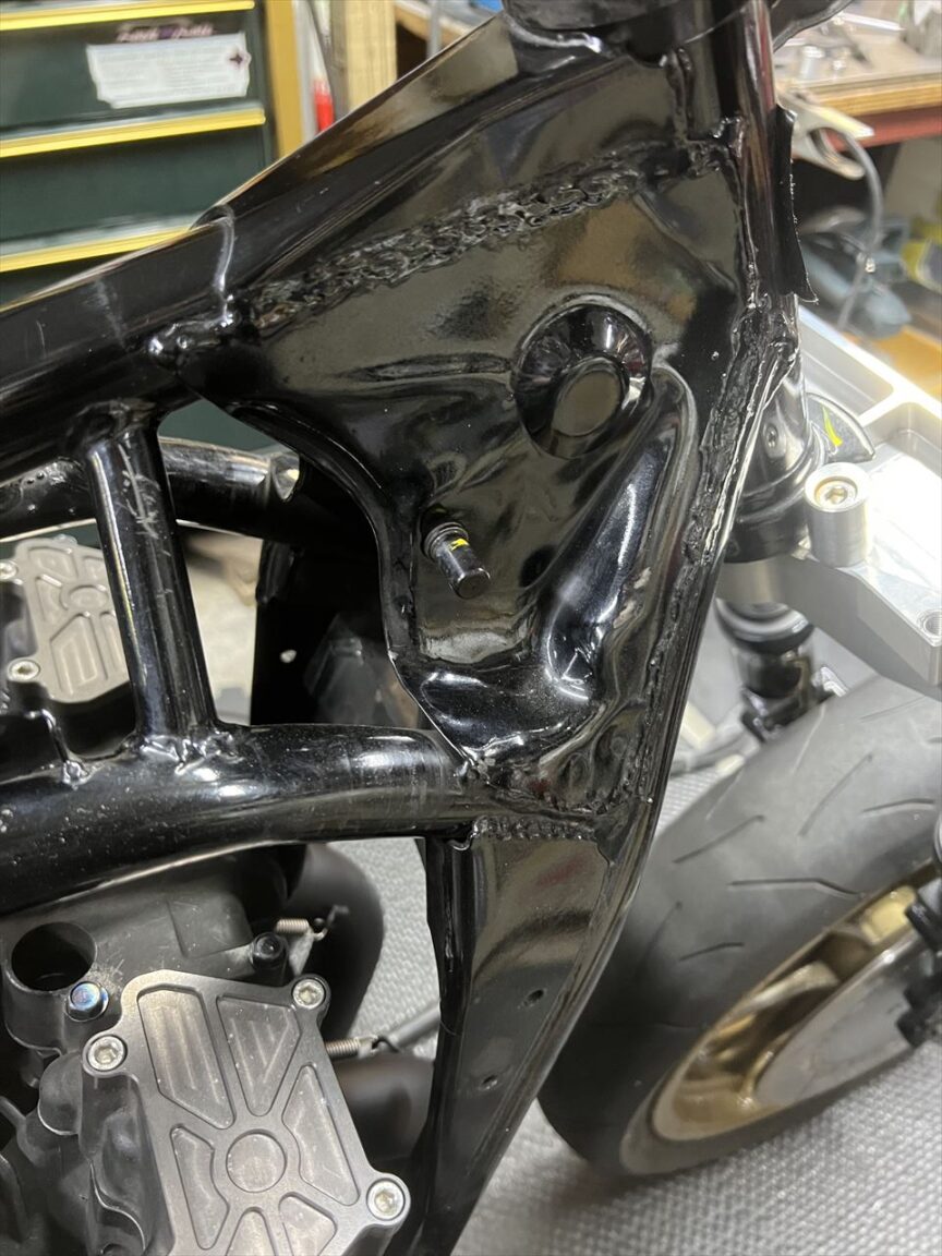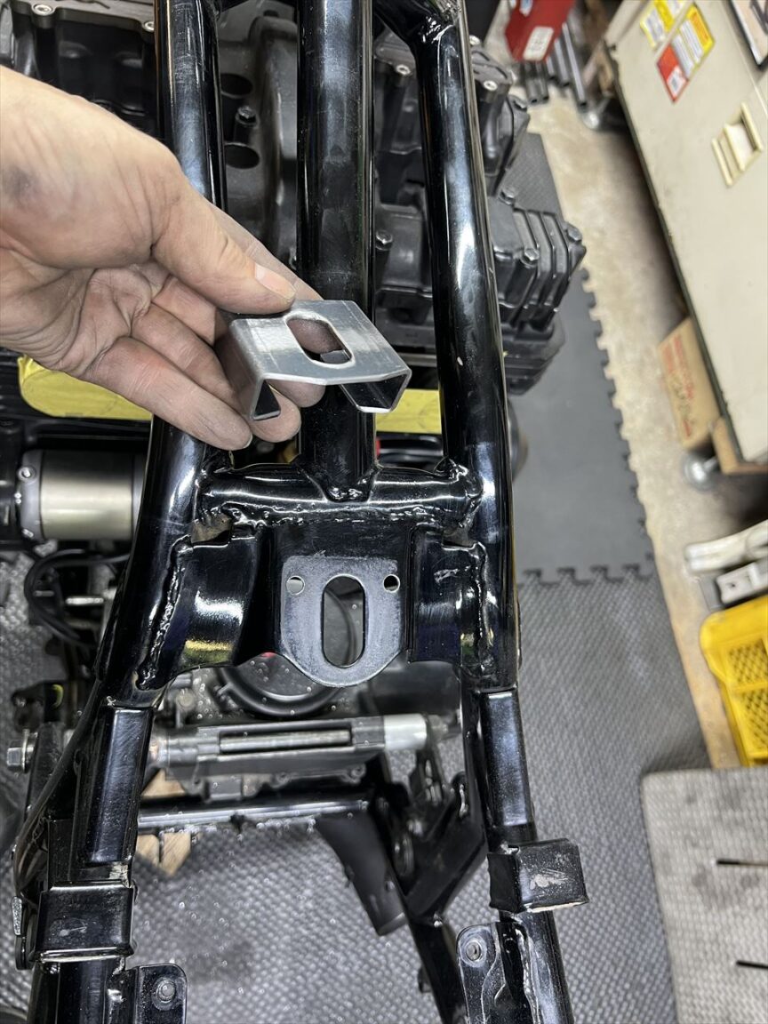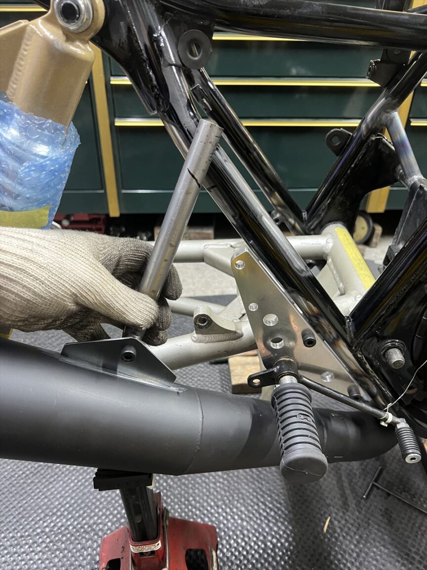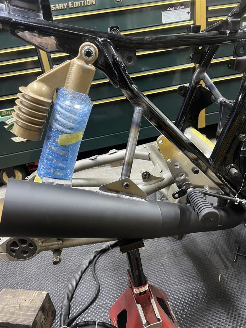 ステーをフレームとサイレンサーに溶接します。