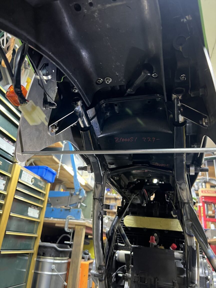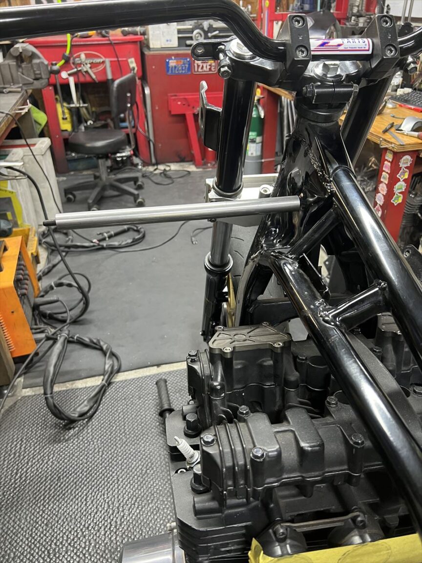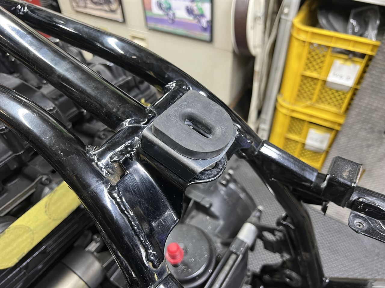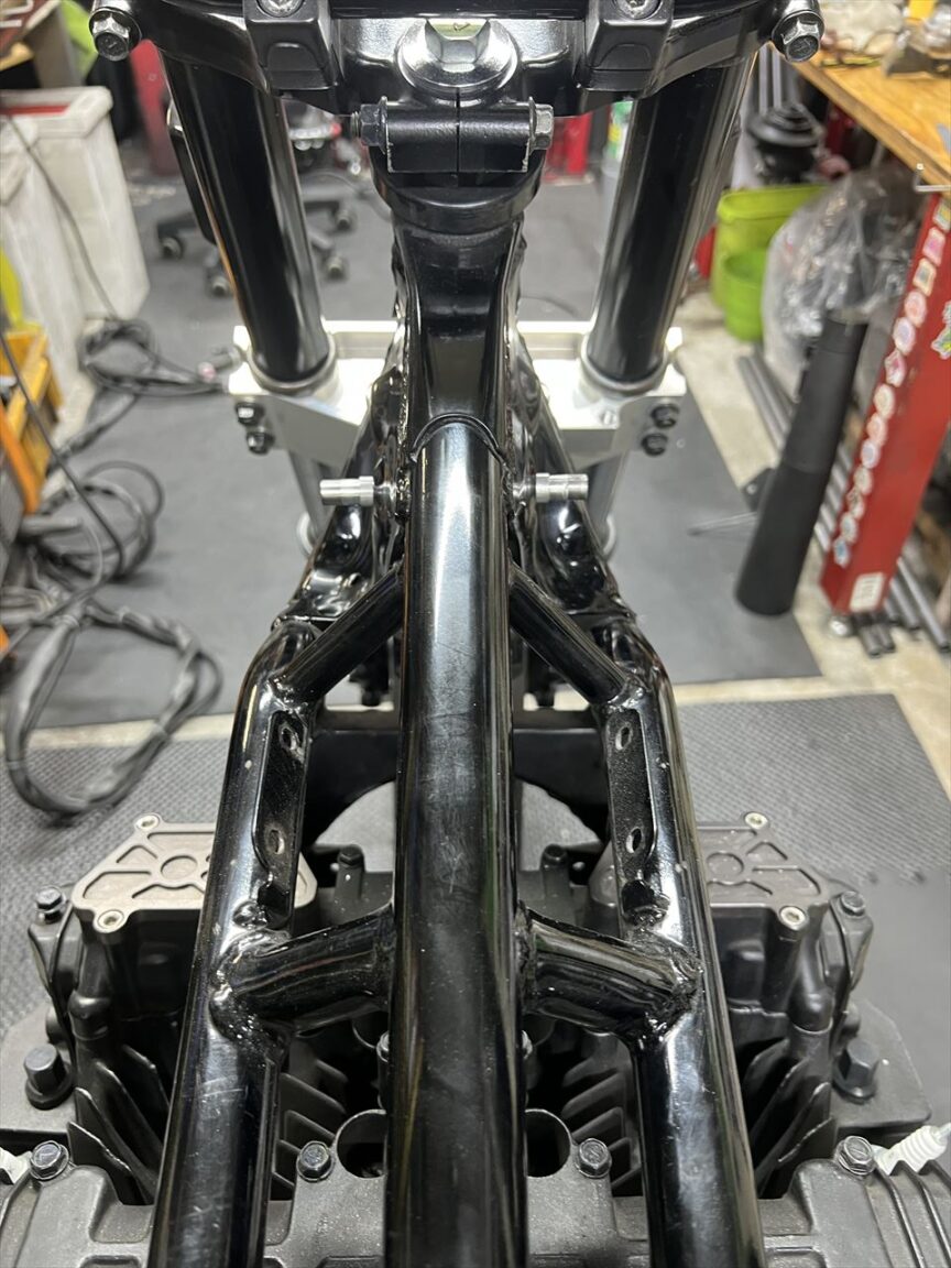 ステーをフレームとサイレンサーに溶接します。