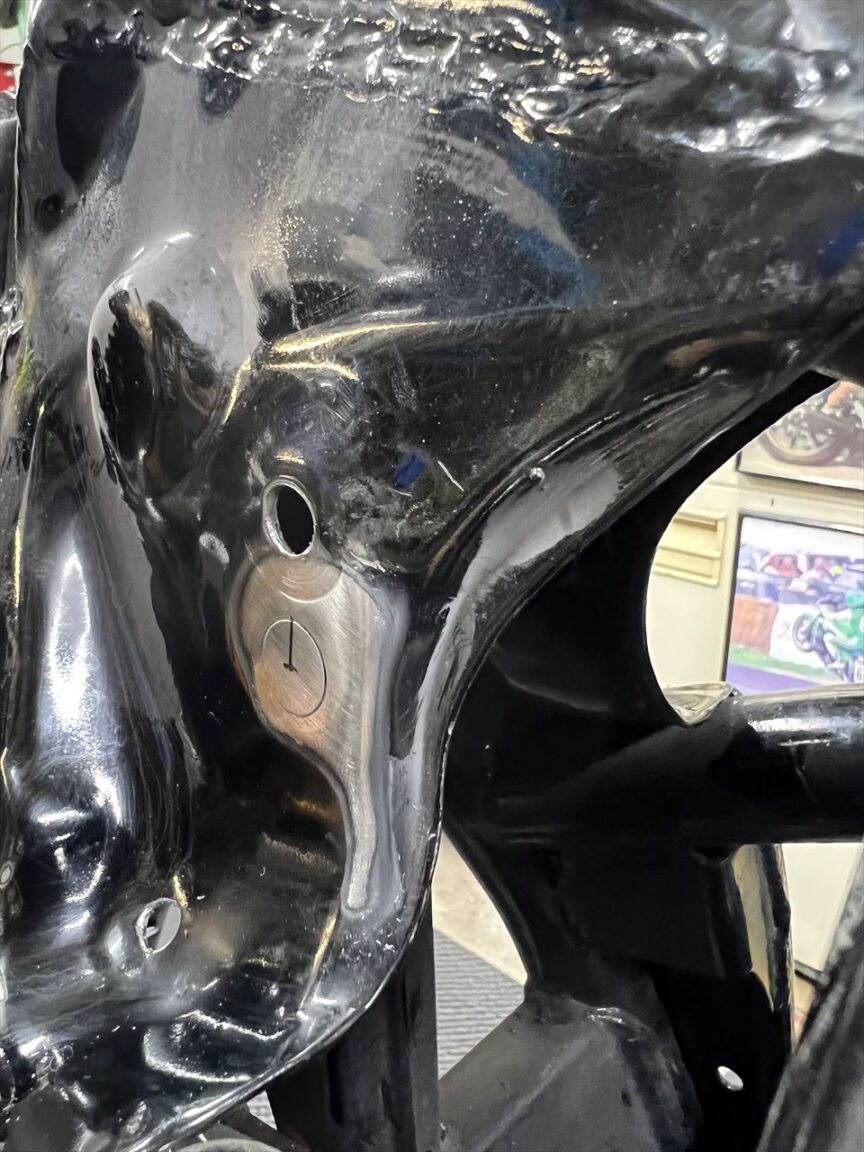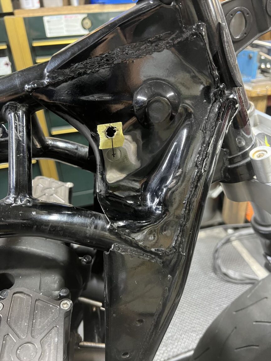 これでガセットに開けた取付穴の座面は垂直になりました。
